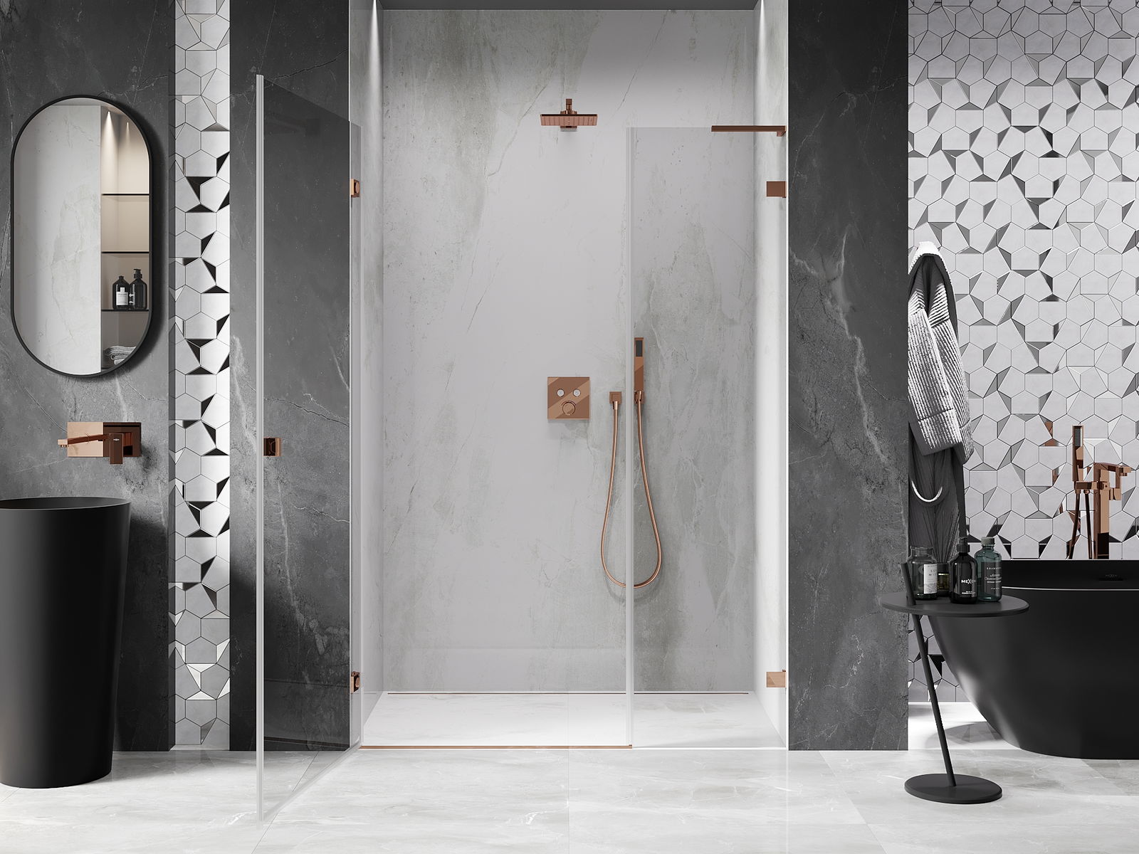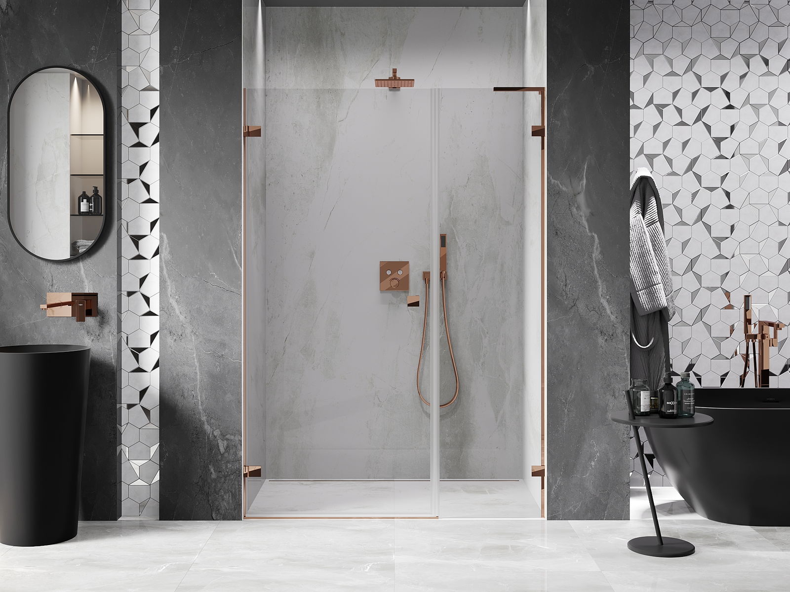 Mexen Lunar-B L shower door left swing 125 cm, transparent, rose gold - 832SL-125-050-60-00-L