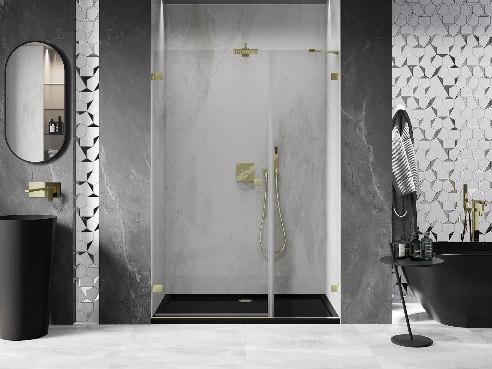 The brackets are made from very durable brass and additionally create a flush glass pane. This is an excellent choice that combines elegance, durability, and modern design. Such solutions enhance the aesthetic of the shower and at the same time make it easier to maintain cleanliness.