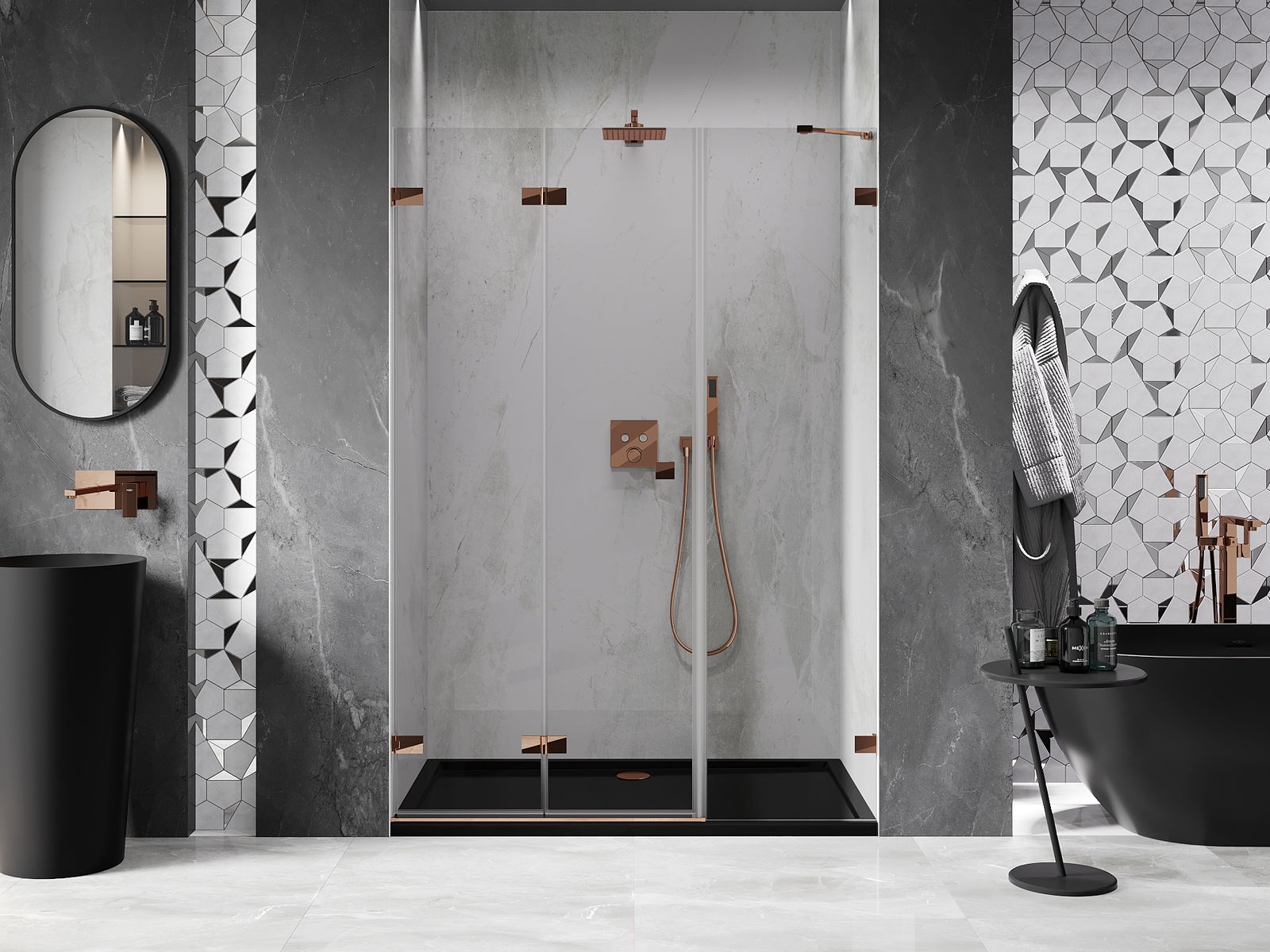 Mexen Lunar-F folding shower door left 135 cm, transparent, rose gold - 836S-135-050-60-00-L