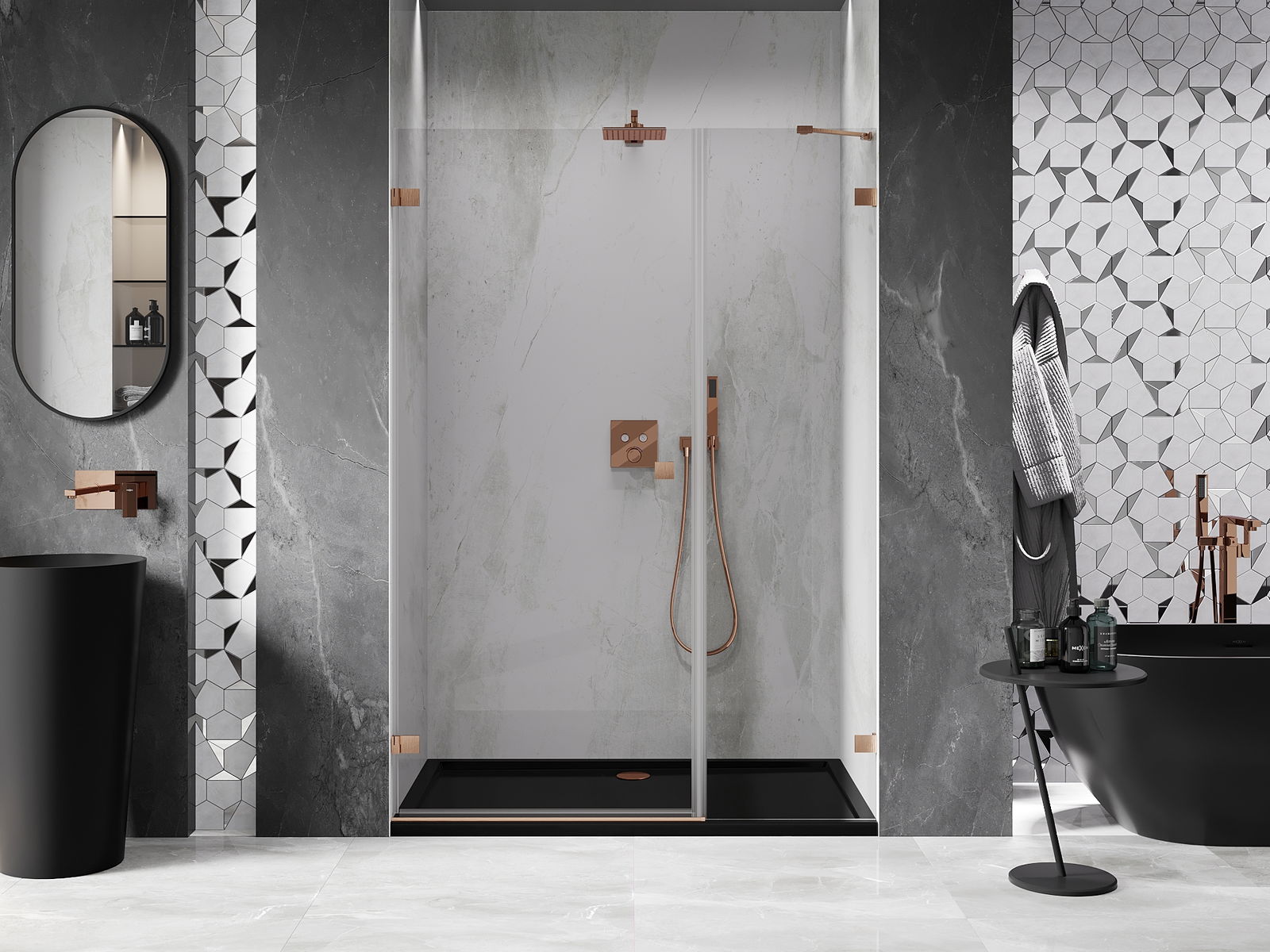 Mexen Lunar-B left hinged shower door 110 cm, transparent, brushed copper - 832S-110-050-65-00-L