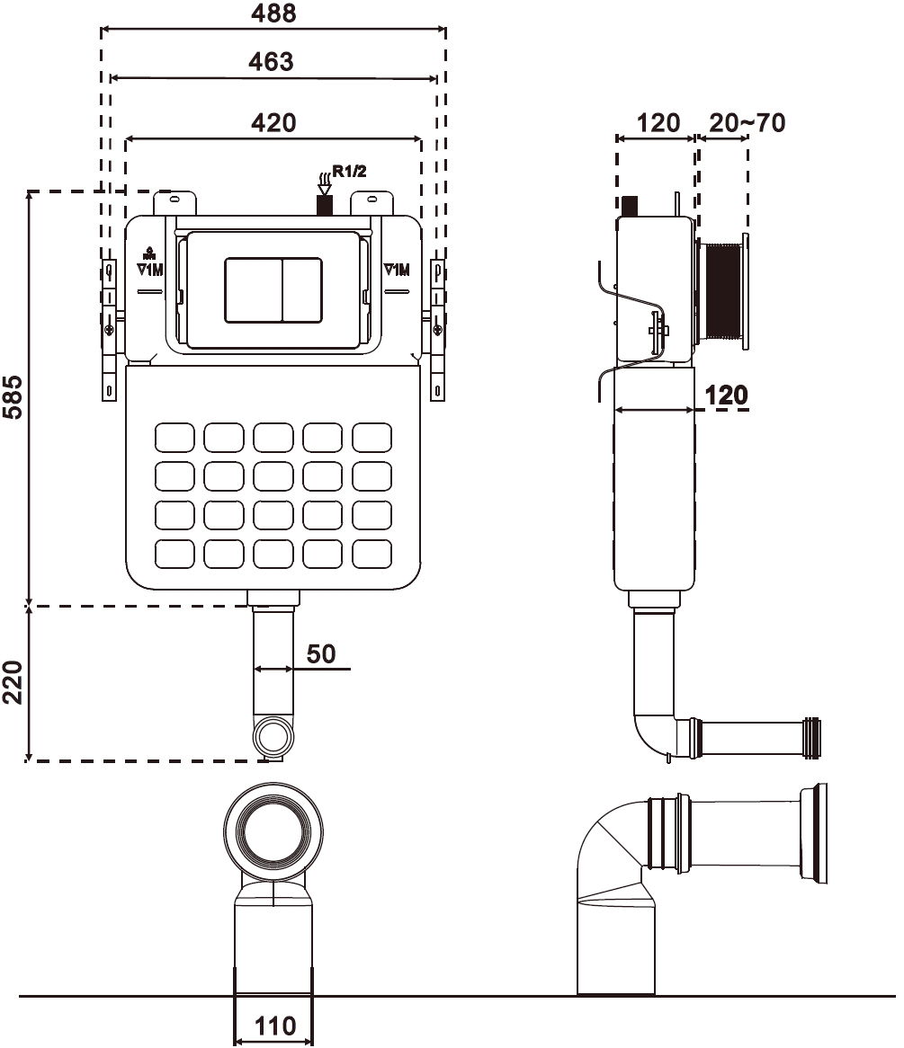 Mexen Tex Air S Pneumatic Concealed Frame for Floor Standing WC - 61102A