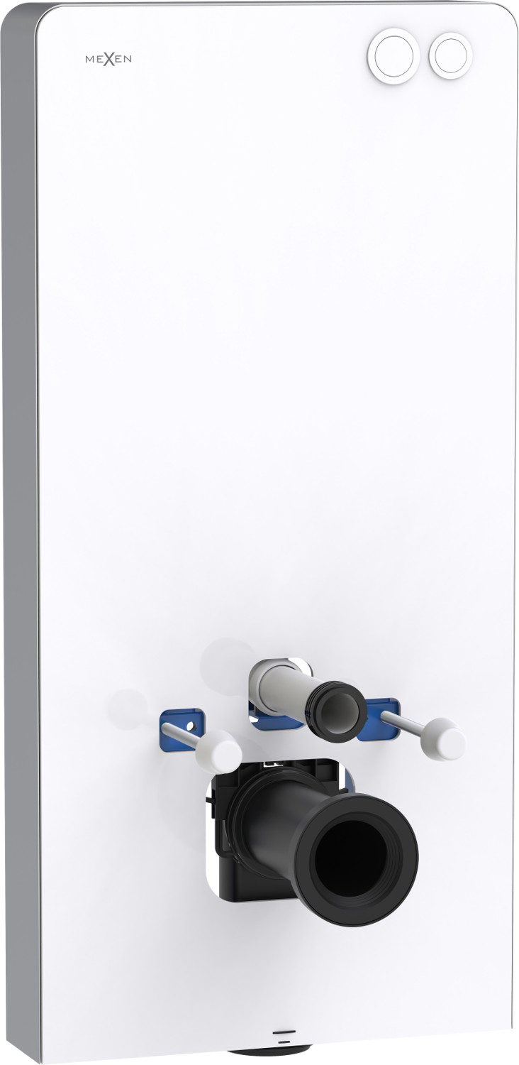 Mexen Tex Air G is a modern surface-mounted WC frame, combining functionality with aesthetics. A height of 103 cm, width of 50 cm, and thickness of 12 cm make it suitable for various spaces. Its front casing of tempered glass and side casing of brushed aluminum add elegance. The built-in flush button and pneumatic flushing system ensure convenient use. It's compatible with both wall-hung and floor-standing toilets and allows for adjustable water volume: 3/6 L.