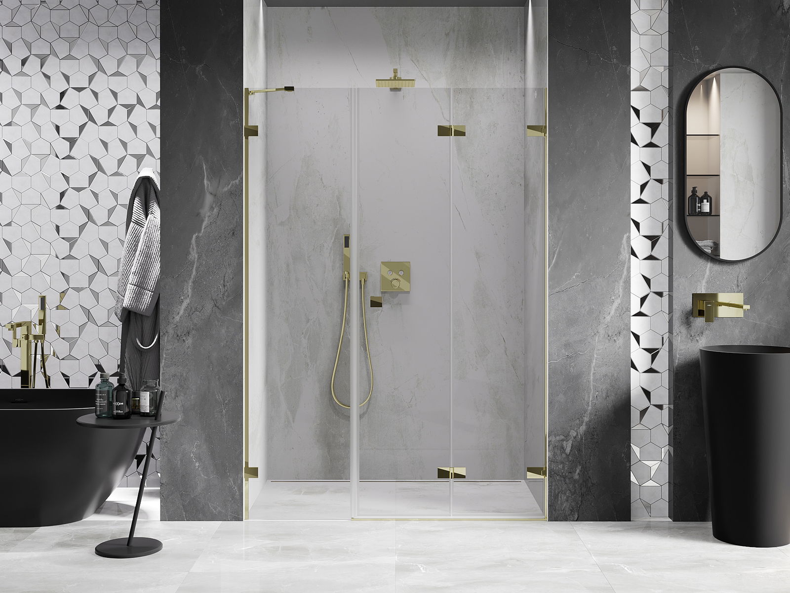 Mexen Lunar-F foldable right shower door 125 cm, transparent, gold - 836S-125-050-50-00-P