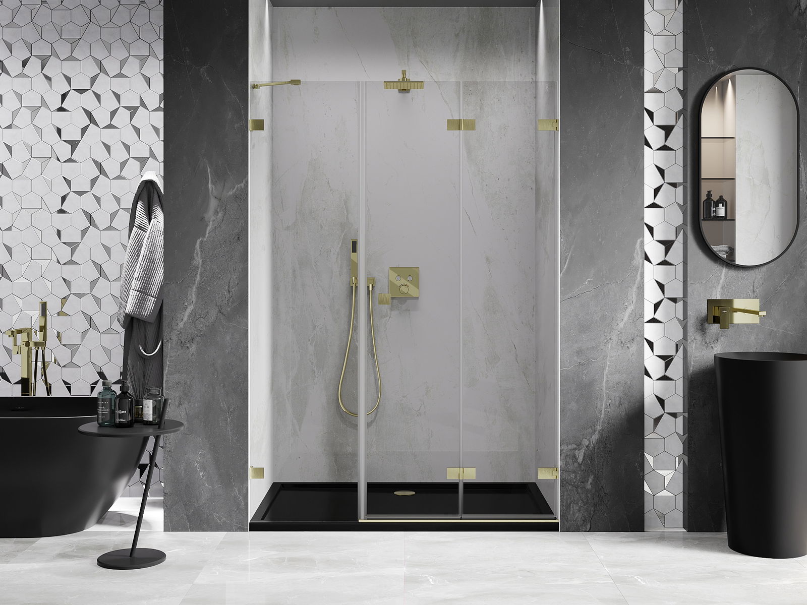 Mexen Lunar-F foldable shower door right 140 cm, transparent, brushed gold - 836S-140-050-55-00-P
