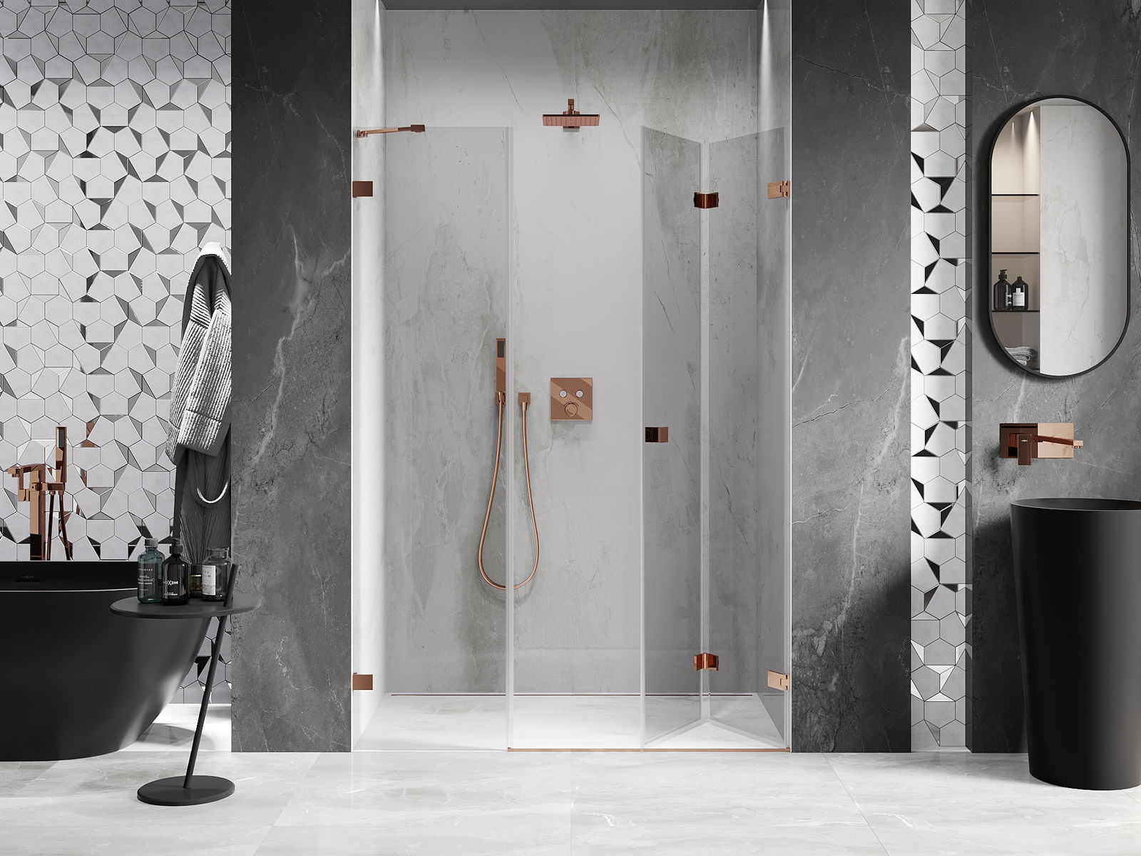 Mexen Lunar-F folding shower door right 130 cm, transparent, rose gold - 836S-130-050-60-00-P