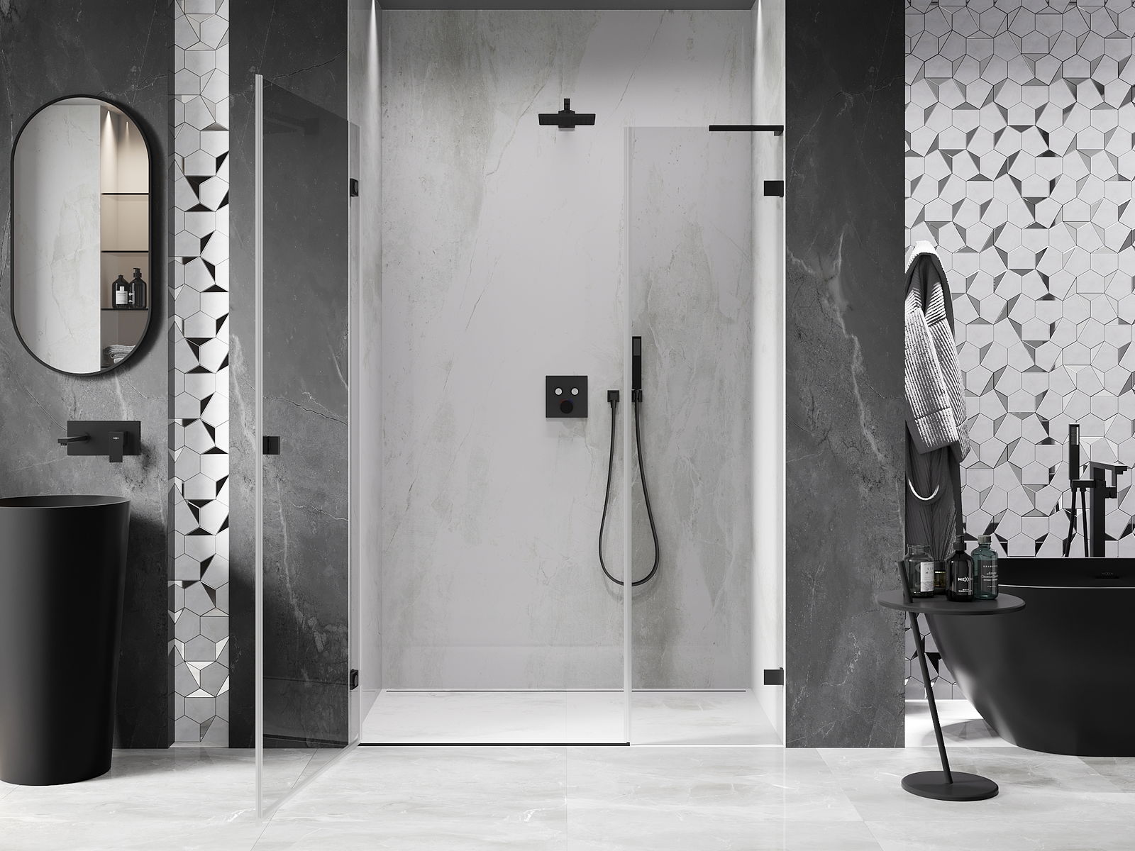 A handy and comfortable handle made from durable and resistant metal. Its trendy shape combined with a finish matched to the colour of the profiles gives the whole a modern and stylish look, highlighting the aesthetics of every bathroom.