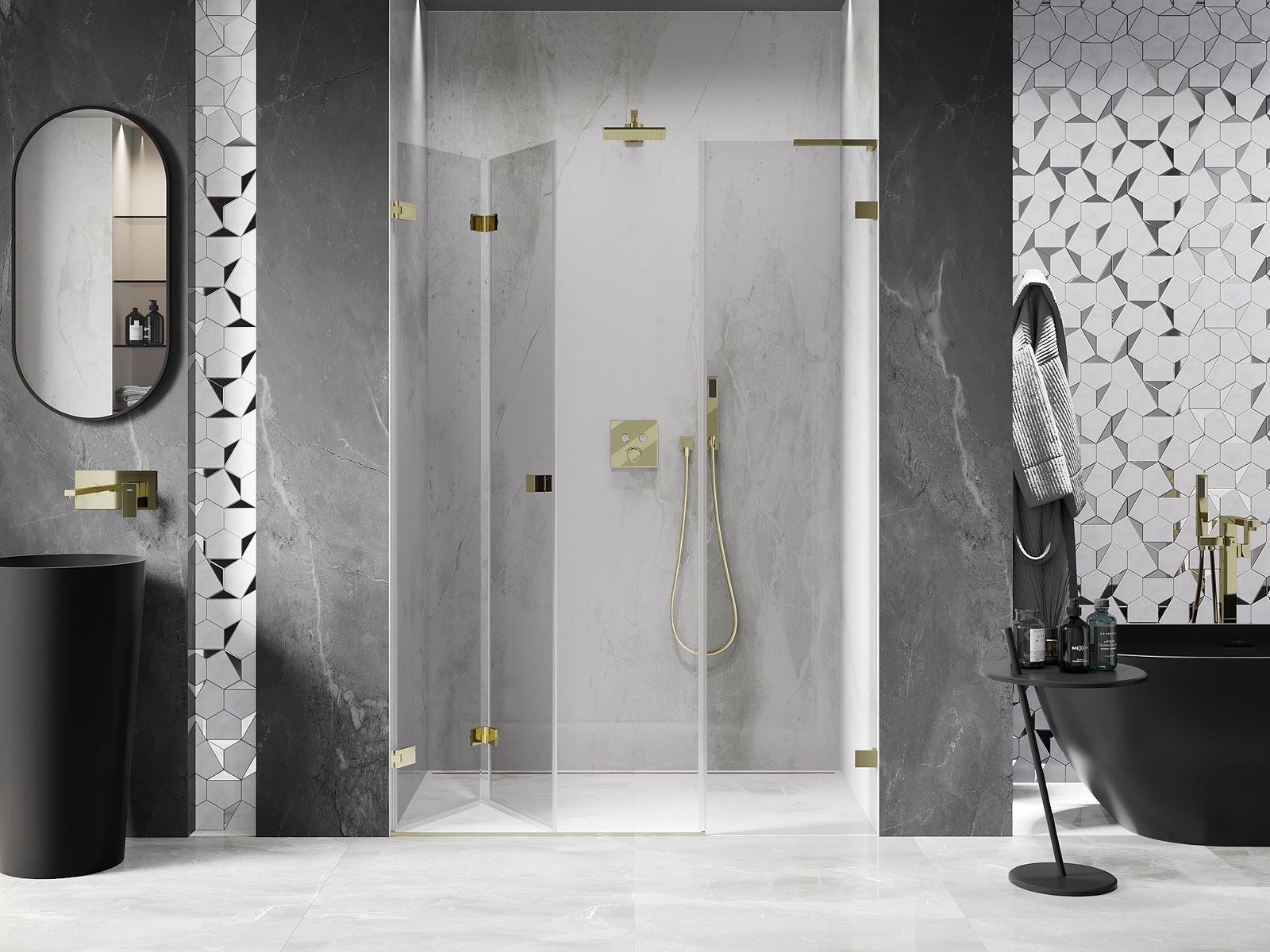 Mexen Lunar-F L foldable shower door left 110 cm, transparent, gold - 836SL-110-050-50-00-L
