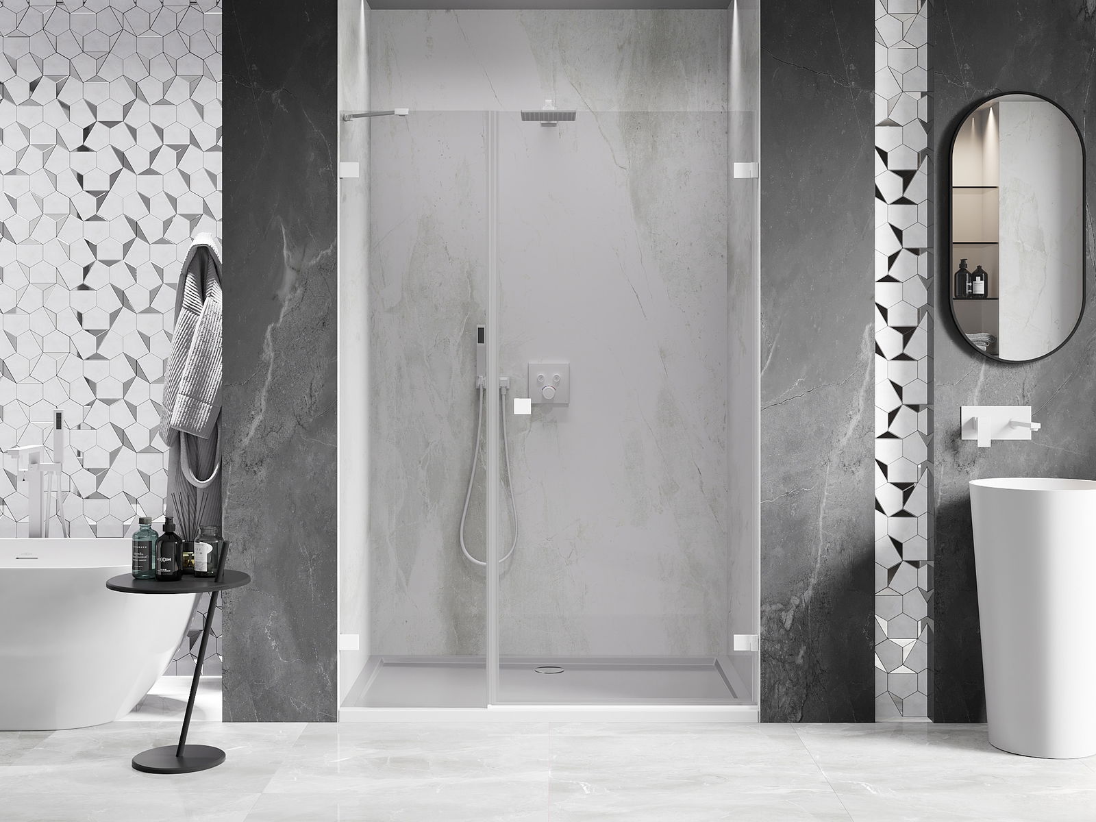 Mexen Lunar-B Right Hinged Shower Door 135 cm, Transparent, White - 832S-135-050-20-00-P