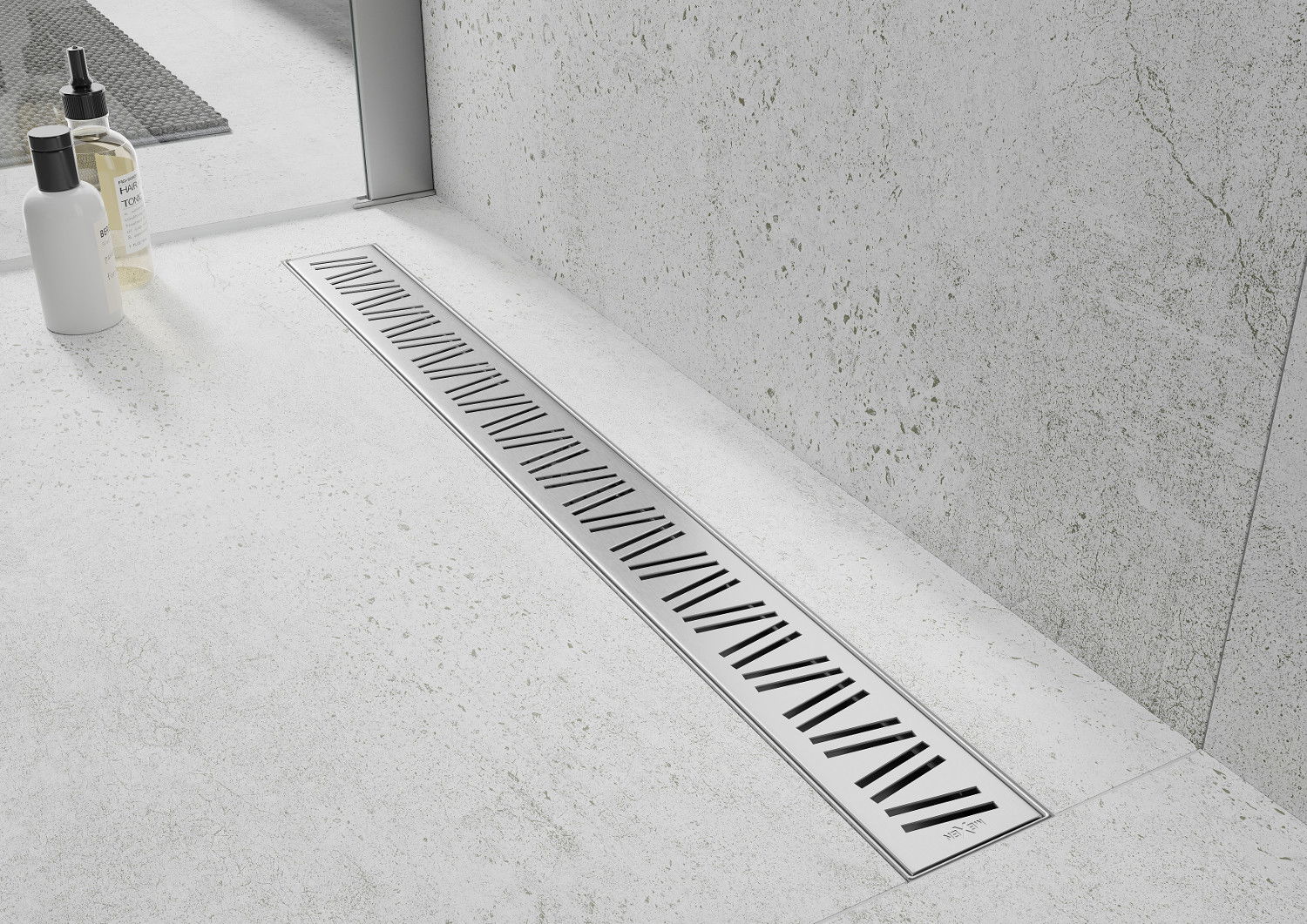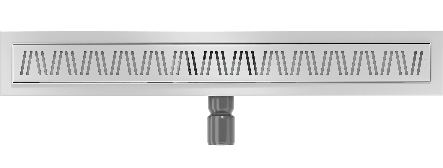 The linear drain is mounted at a depth of only 52 mm. The low depth allows for easier surface preparation for the drain installation and easy leveling, ensuring high aesthetics and effective water drainage.