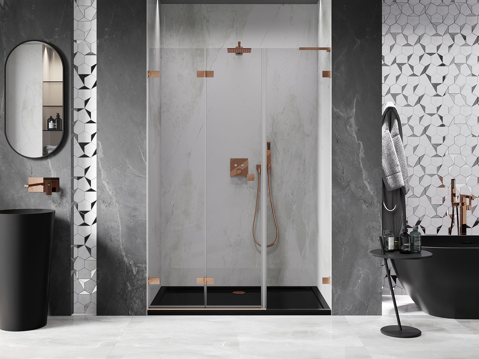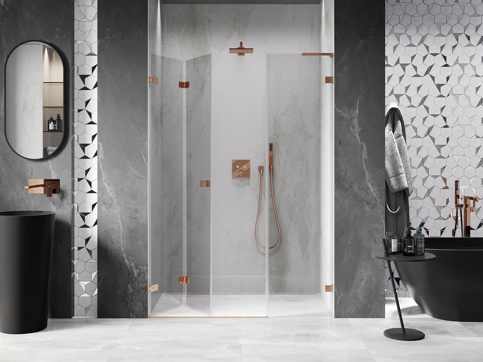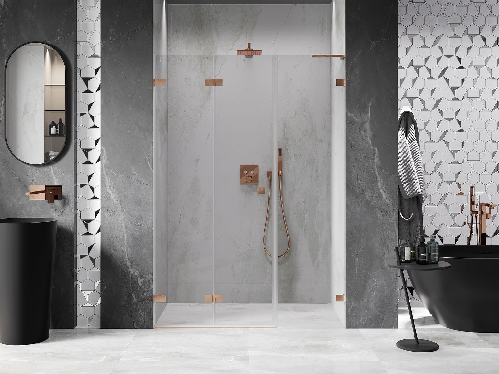 Mexen Lunar-F L foldable shower door left 145 cm, transparent, brushed copper - 836SL-145-050-65-00-L