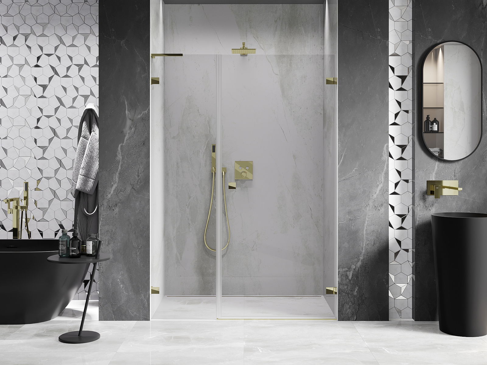 Mexen Lunar-B L 145 cm Right Hinged Shower Door, Transparent, Gold - 832SL-145-050-50-00-P