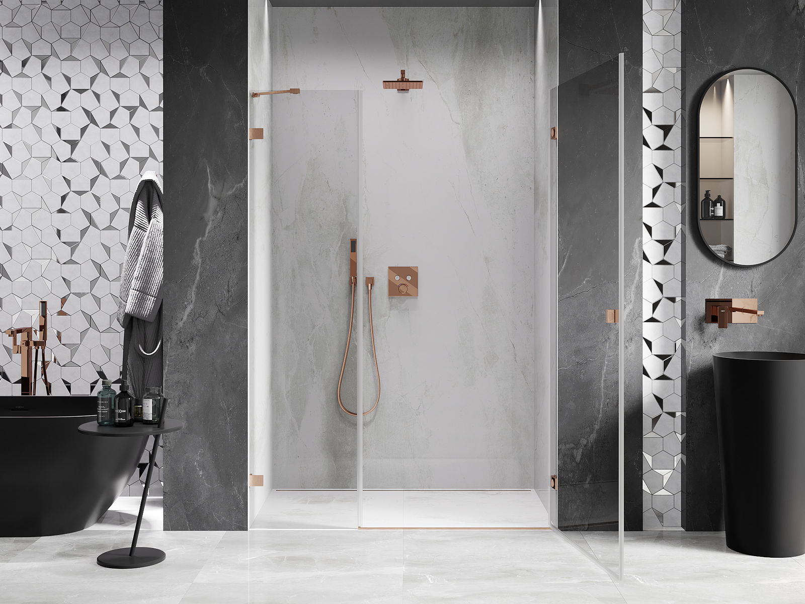 Mexen Lunar-B Right Hinged Shower Door 145 cm, Transparent, Brushed Copper - 832S-145-050-65-00-P
