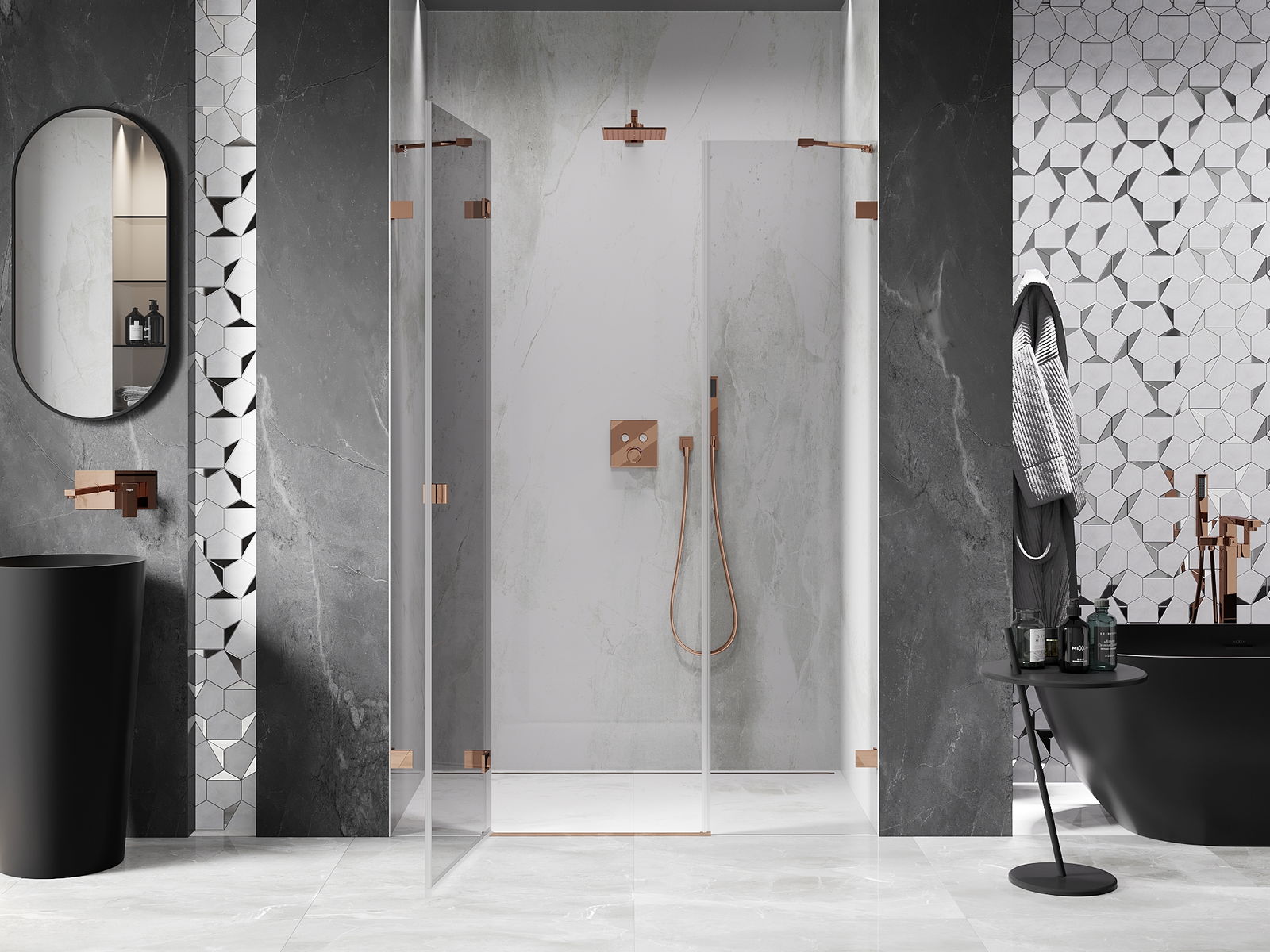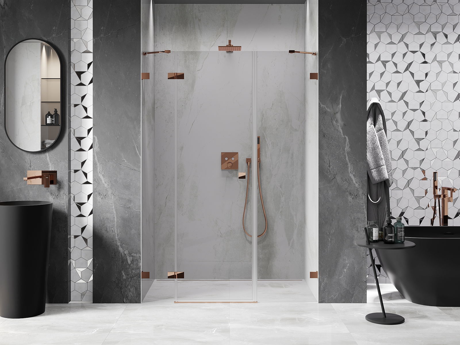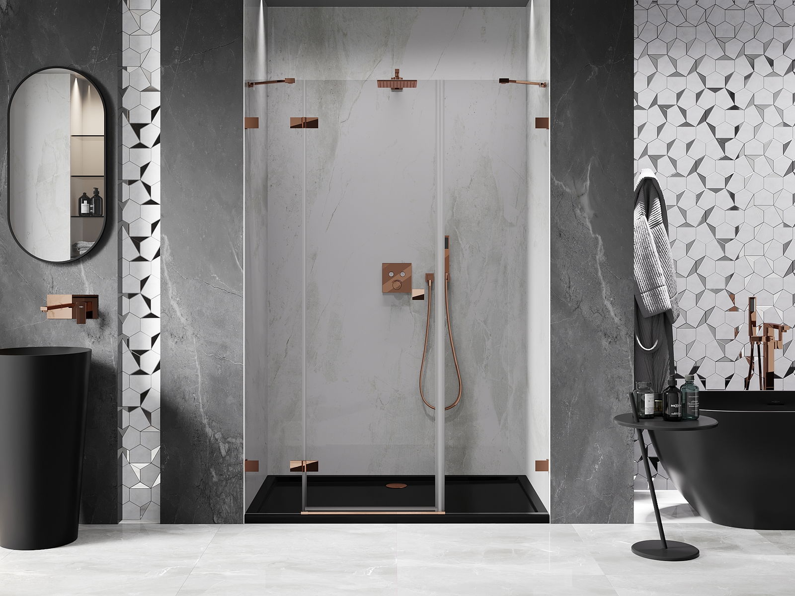 Mexen Lunar 135 cm Left Hinged Shower Door, Transparent, Rose Gold - 834S-135-050-60-00-L