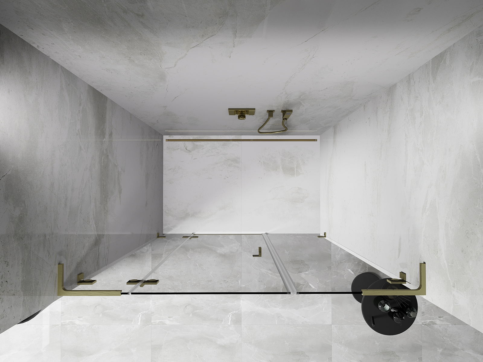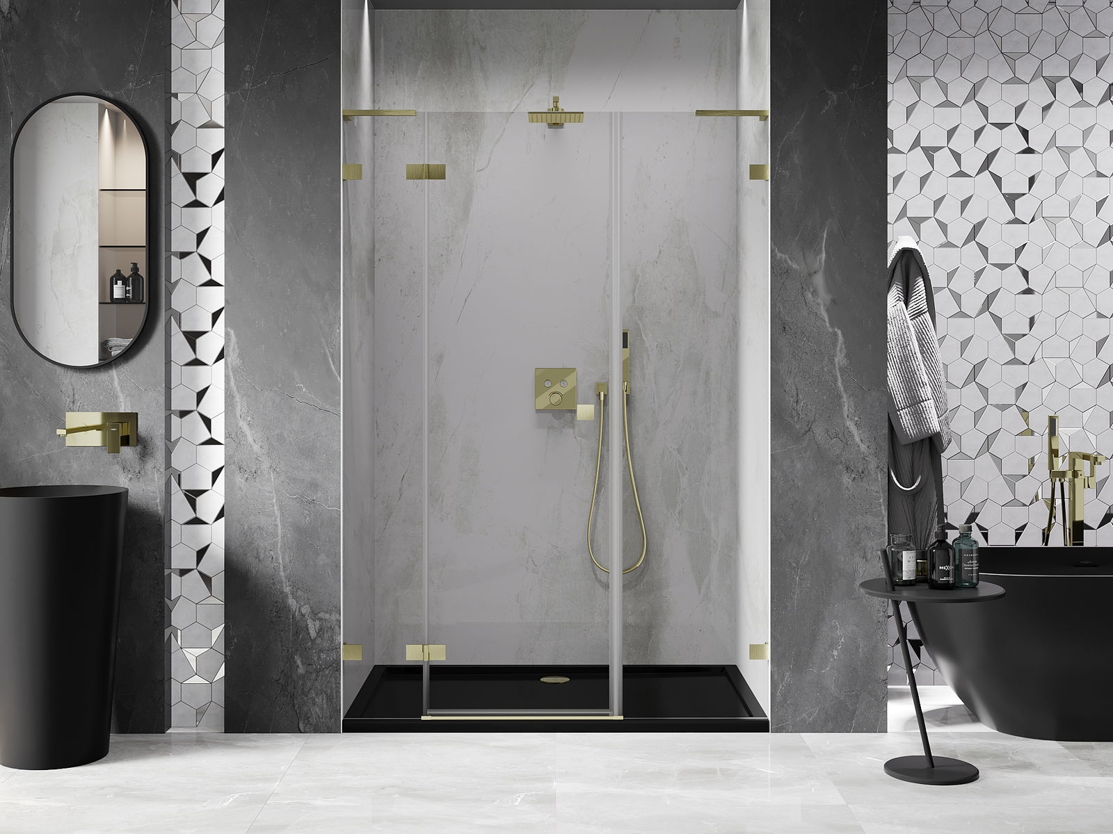 Mexen Lunar L left-hand hinged shower door 155 cm, transparent, brushed gold - 834SL-155-050-55-00-L