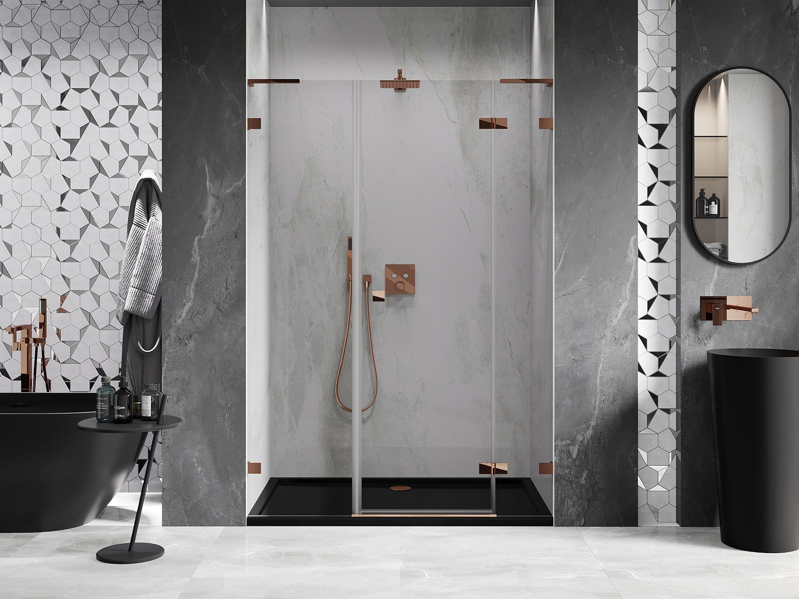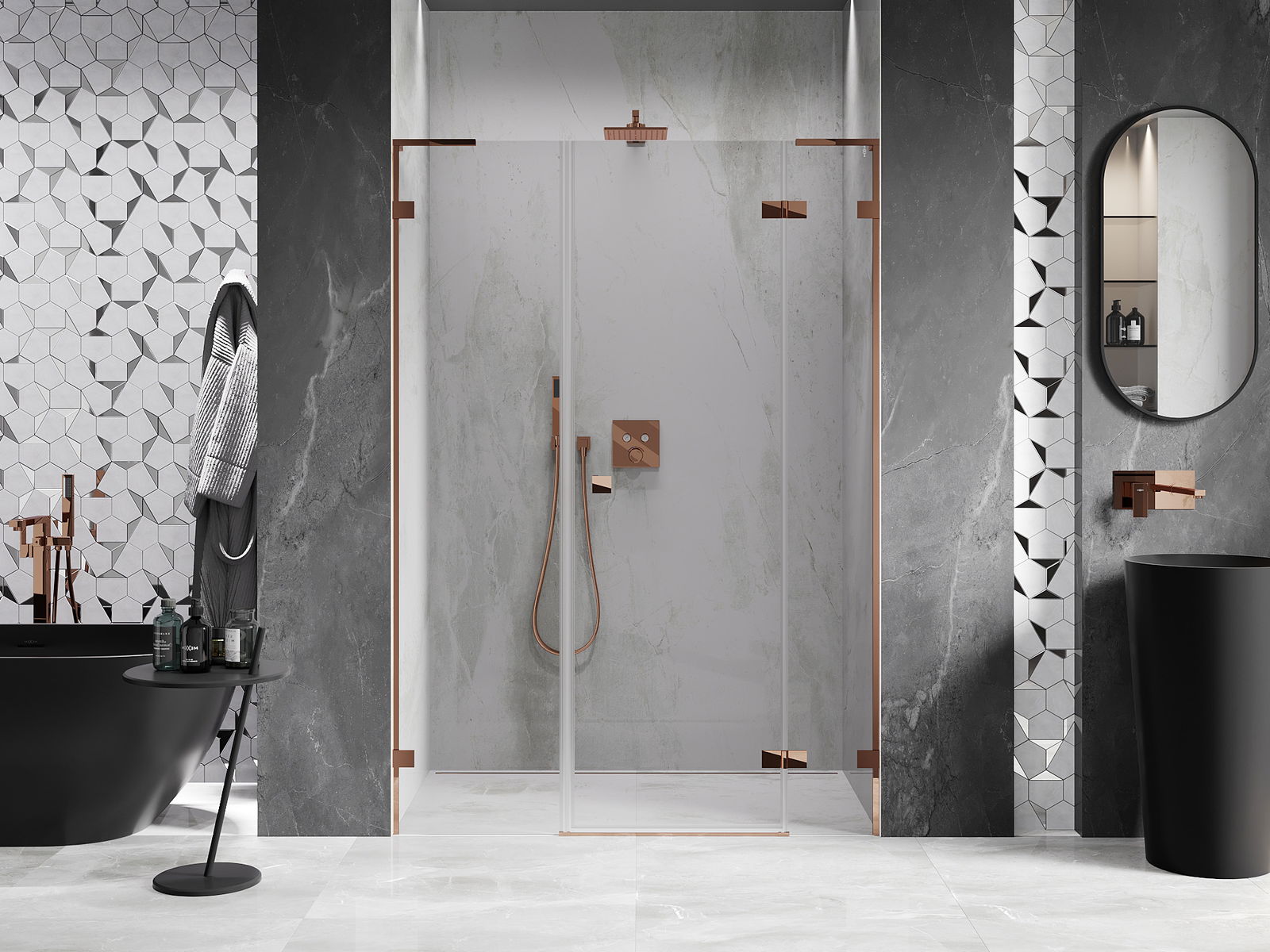 Mexen Lunar L right swing shower door 135 cm, transparent, rose gold - 834SL-135-050-60-00-P