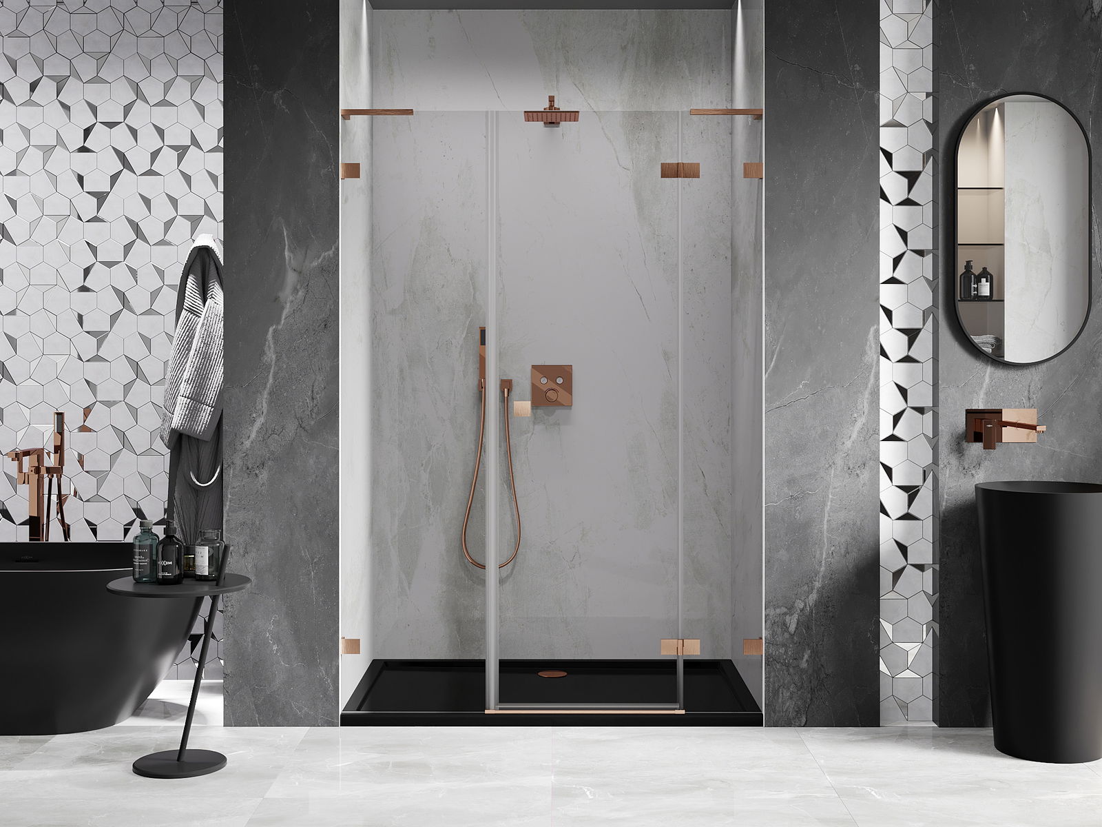 Mexen Lunar L right hinged shower door 150 cm, transparent, brushed copper - 834SL-150-050-65-00-P