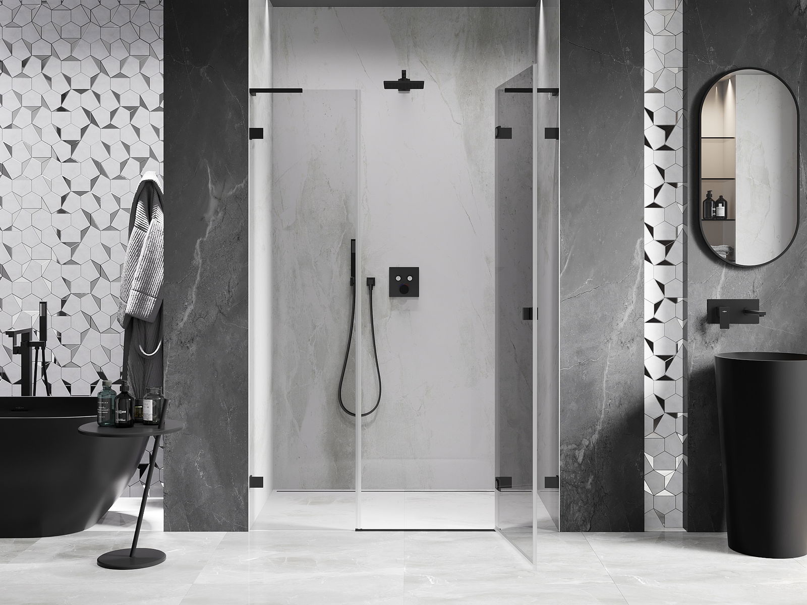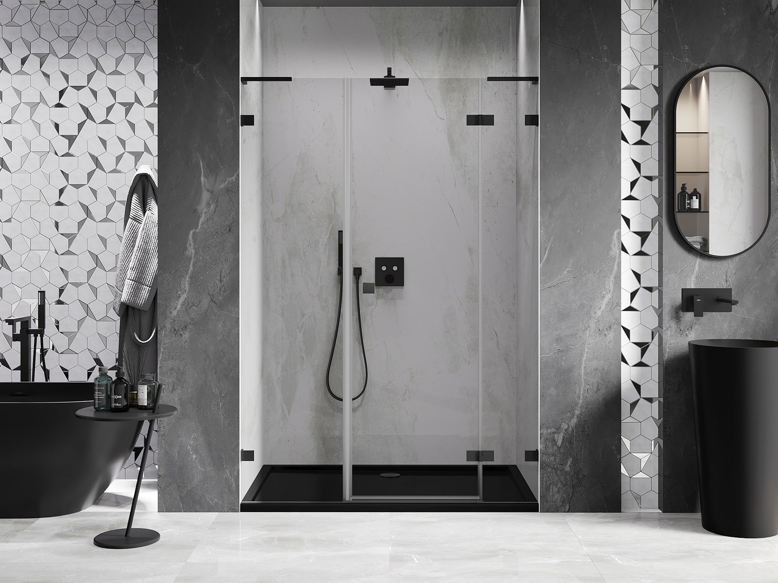 A handy and comfortable handle made from durable and resistant metal. Its trendy shape combined with a finish matched to the colour of the profiles gives the whole a modern and stylish look, highlighting the aesthetics of every bathroom.