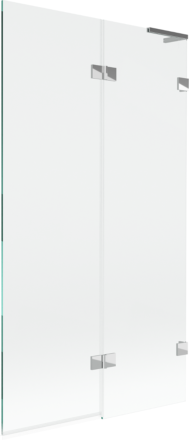 Screen made of two wings with the possibility of folding. This solution allows for more space-saving in the bathroom and enables free use of the remaining space when not using the bathing area.