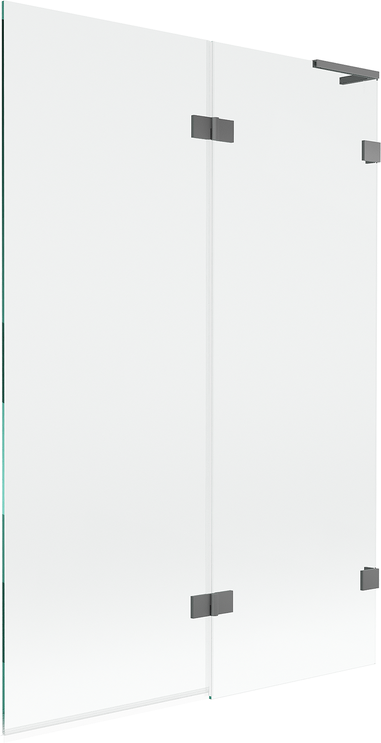Screen made of two wings with the possibility of folding. This solution allows for more space-saving in the bathroom and enables free use of the remaining space when not using the bathing area.