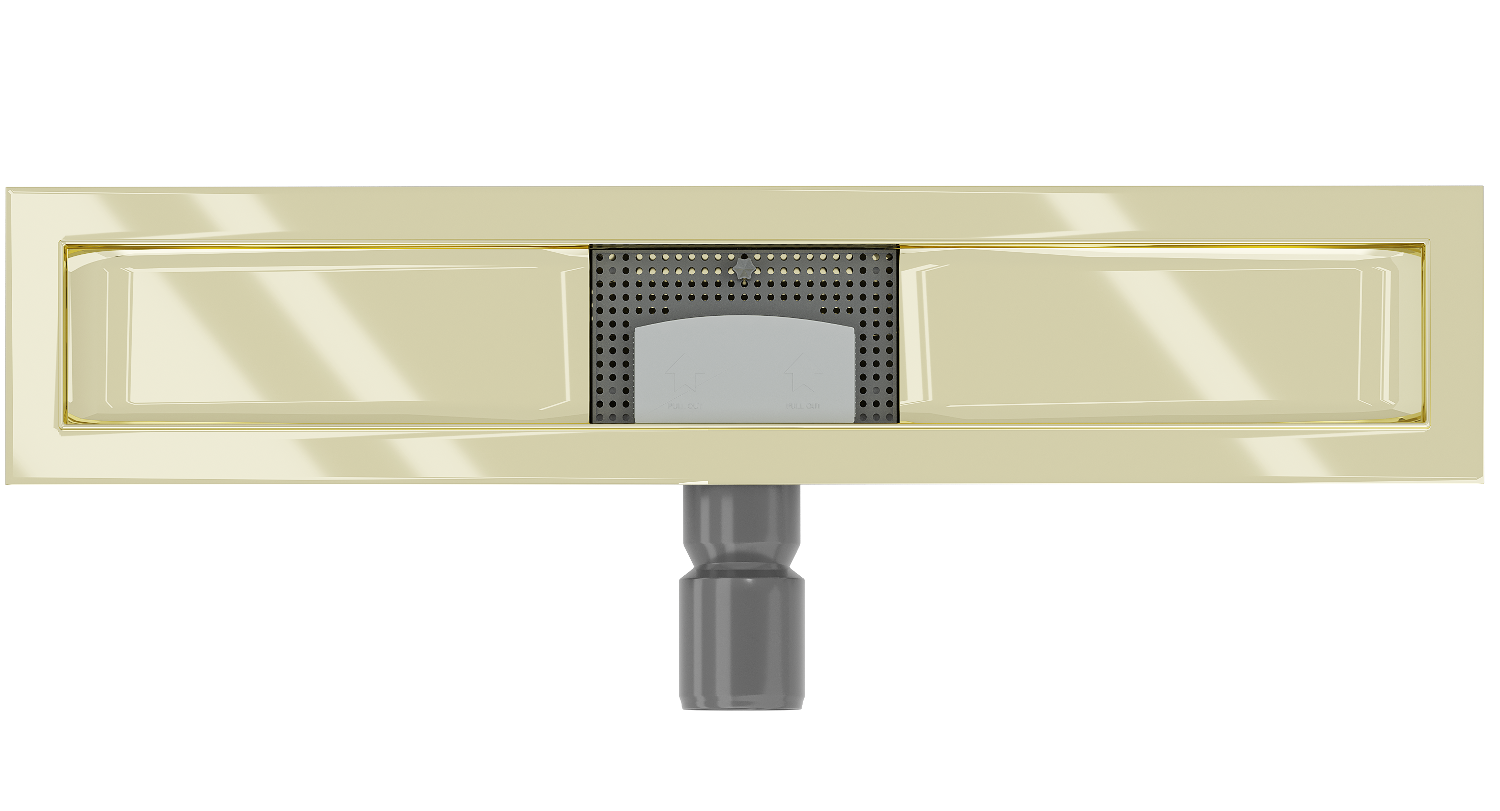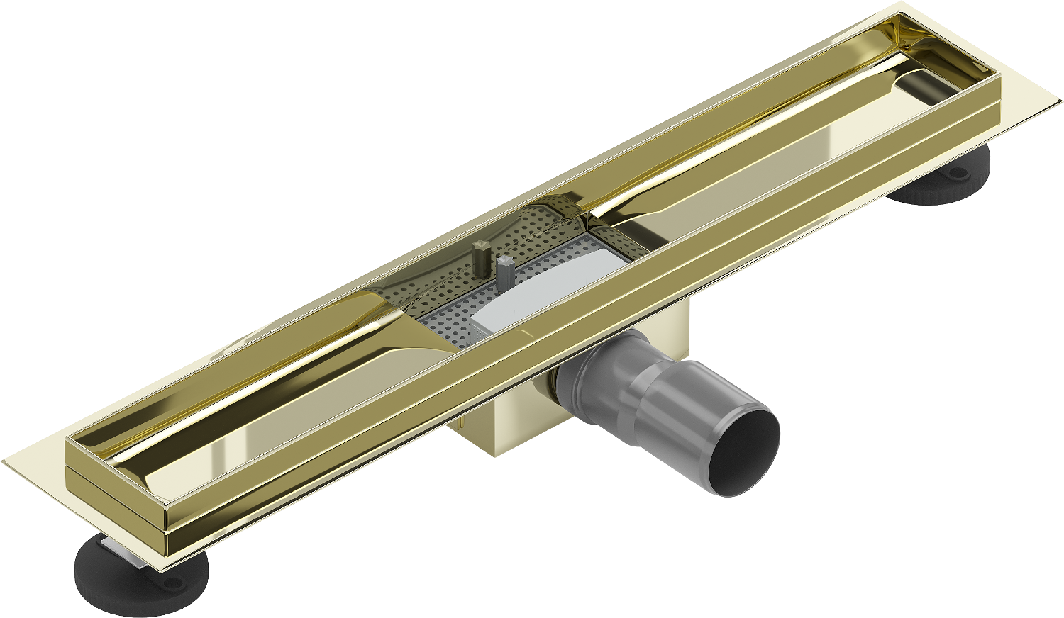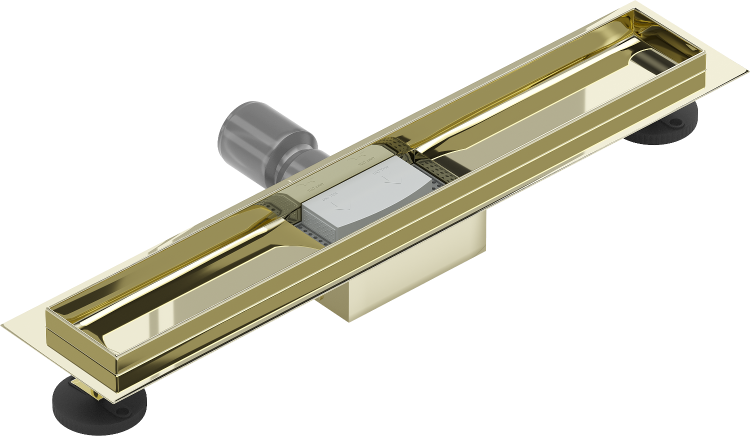 The linear drain is mounted at a depth of only 52 mm. The low depth allows for easier surface preparation for the drain installation and easy leveling, ensuring high aesthetics and effective water drainage.