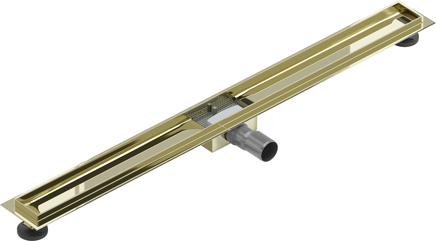 The linear drain is mounted at a depth of only 52 mm. The low depth allows for easier surface preparation for the drain installation and easy leveling, ensuring high aesthetics and effective water drainage.