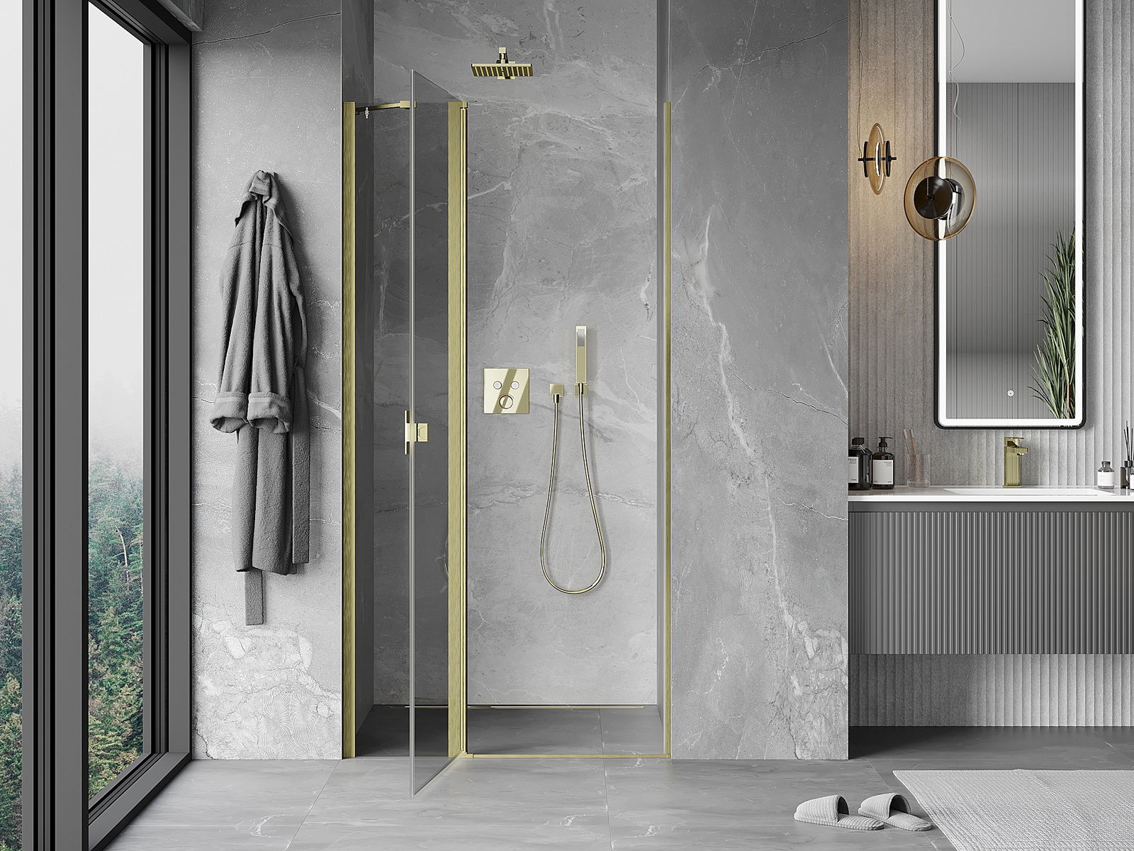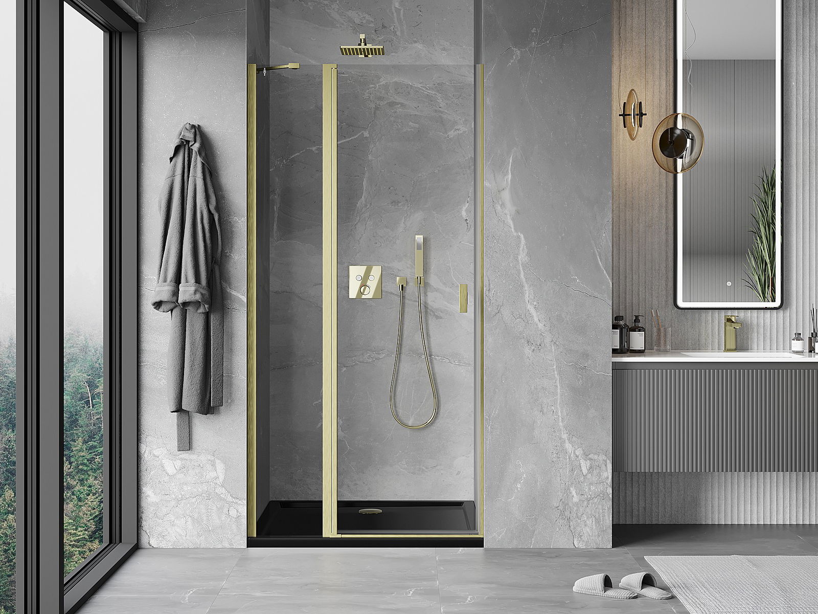 A handy and comfortable handle made from durable and resistant metal. Its trendy shape combined with a finish matched to the colour of the profiles gives the whole a modern and stylish look, highlighting the aesthetics of every bathroom.