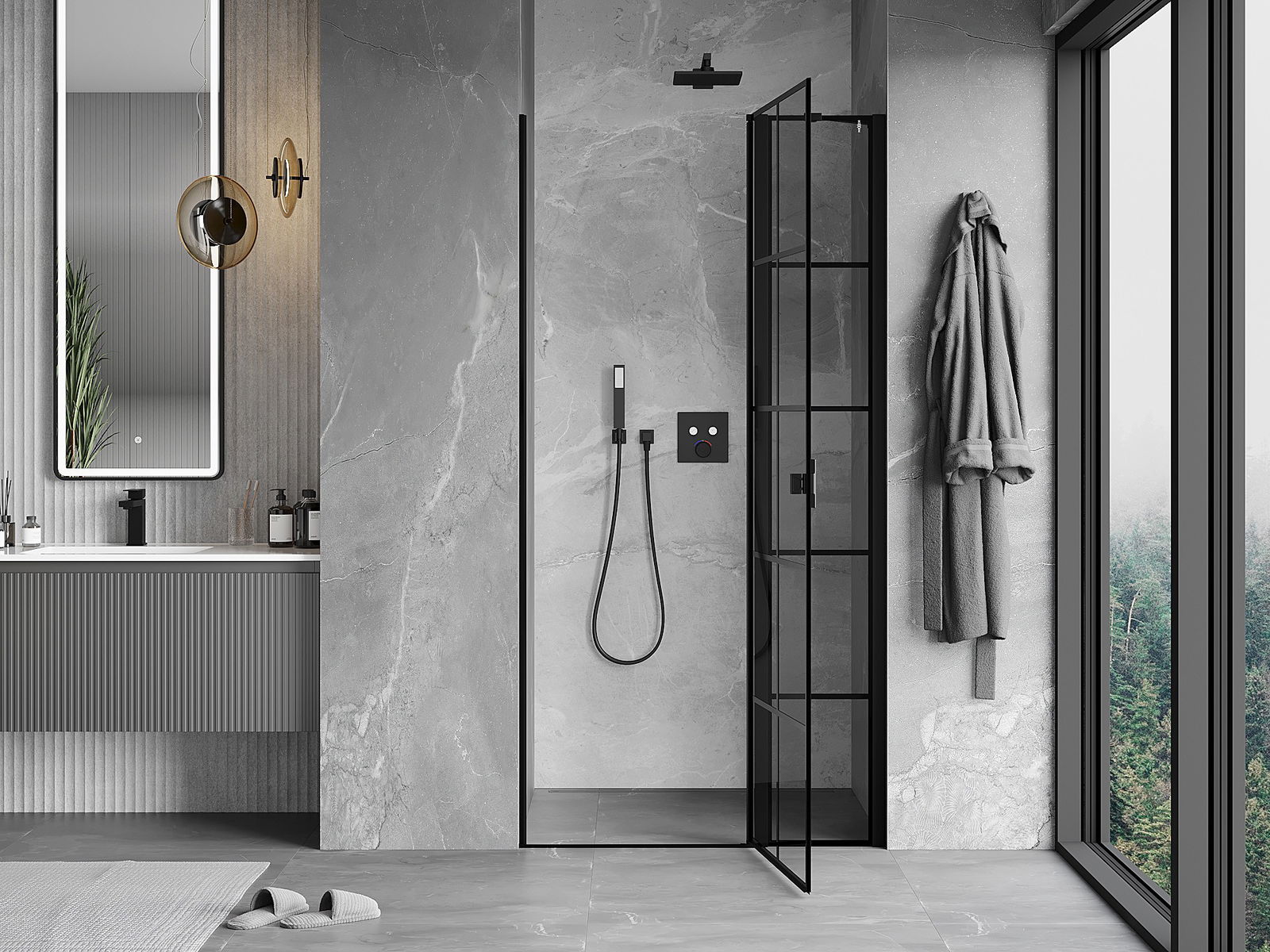 A handy and comfortable handle made from durable and resistant metal. Its trendy shape combined with a finish matched to the colour of the profiles gives the whole a modern and stylish look, highlighting the aesthetics of every bathroom.