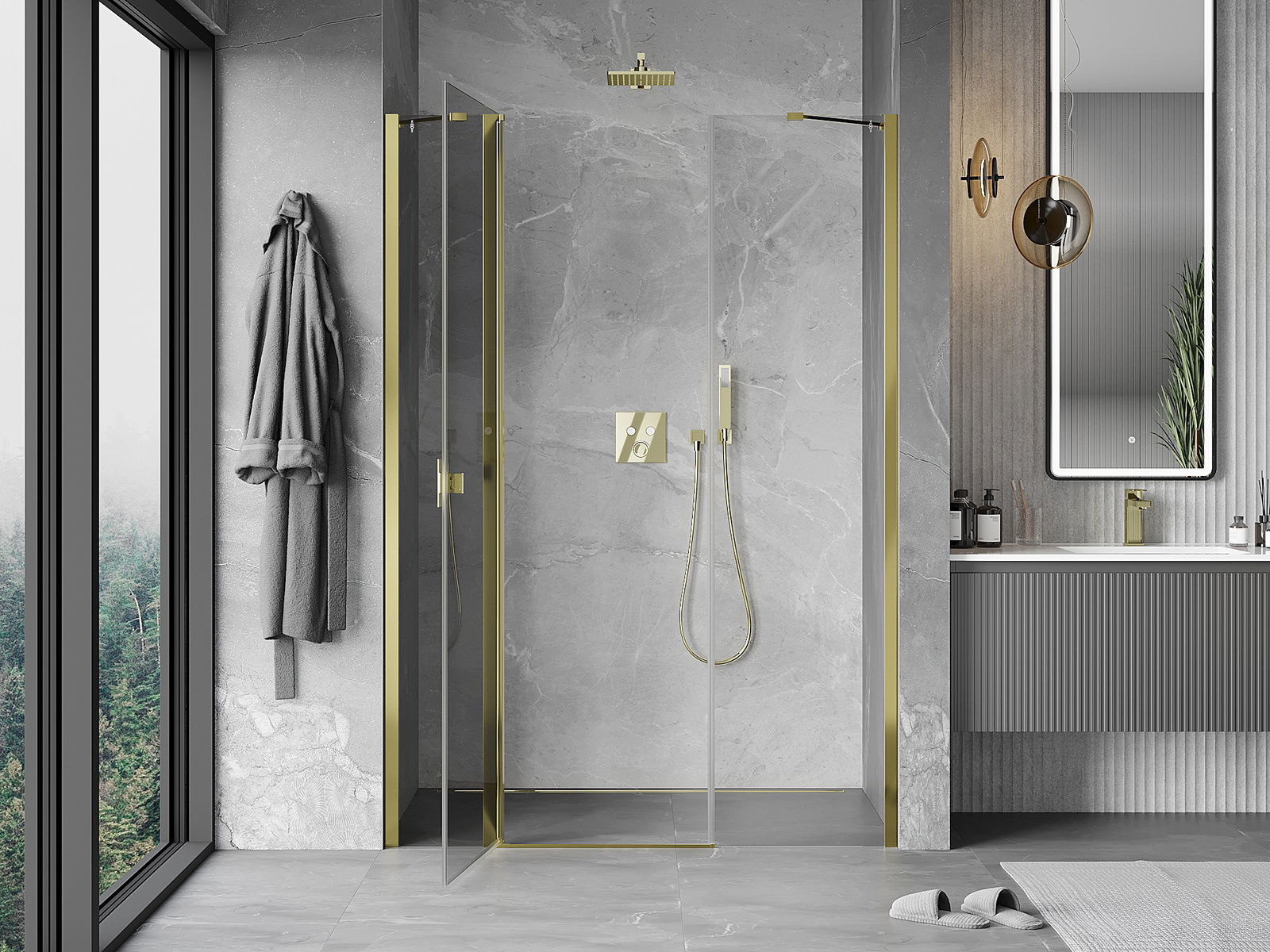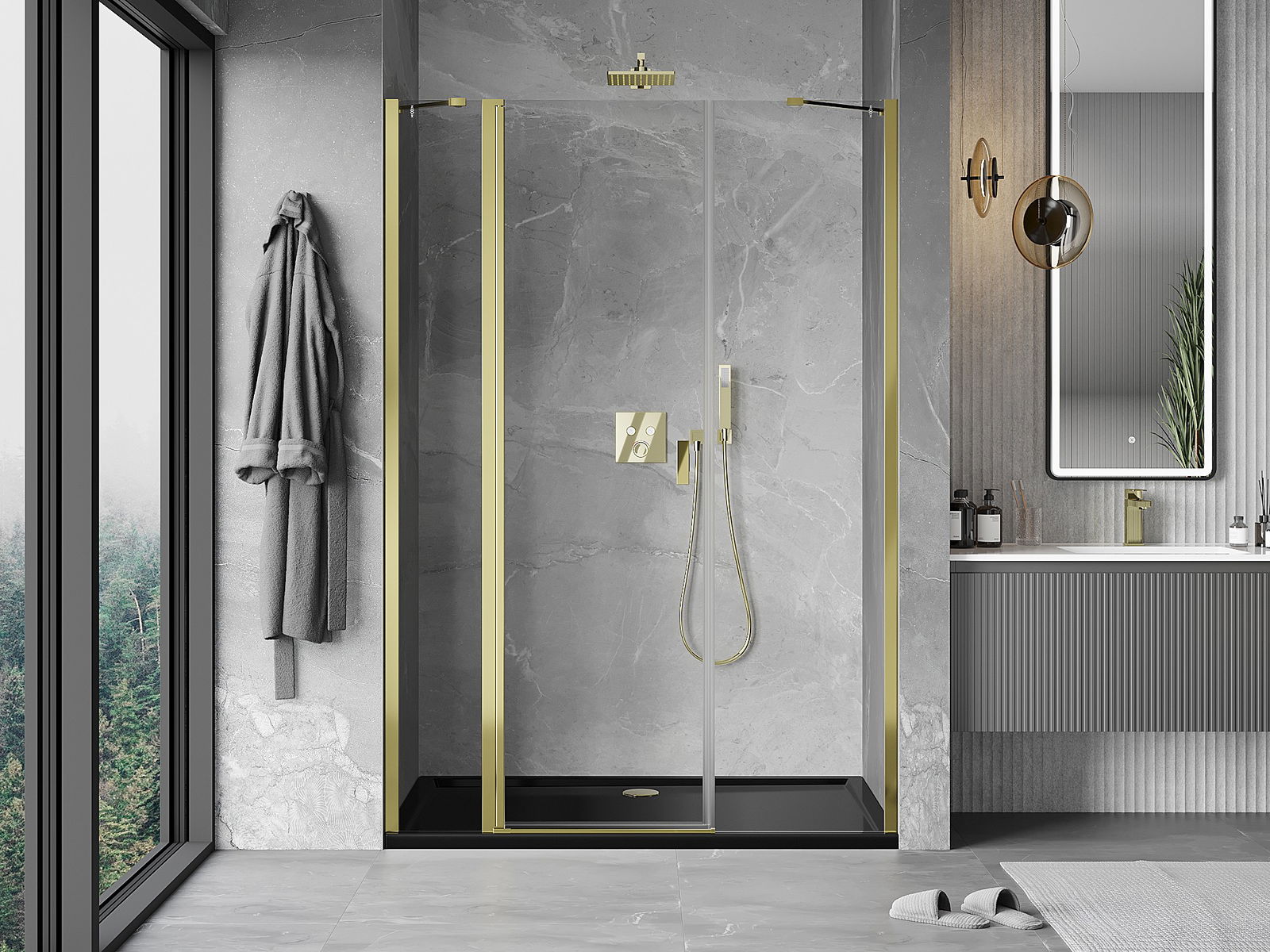 Mexen Mist 140 cm Hinged Shower Door, Transparent, Gold - 8A4-140-001-50-00