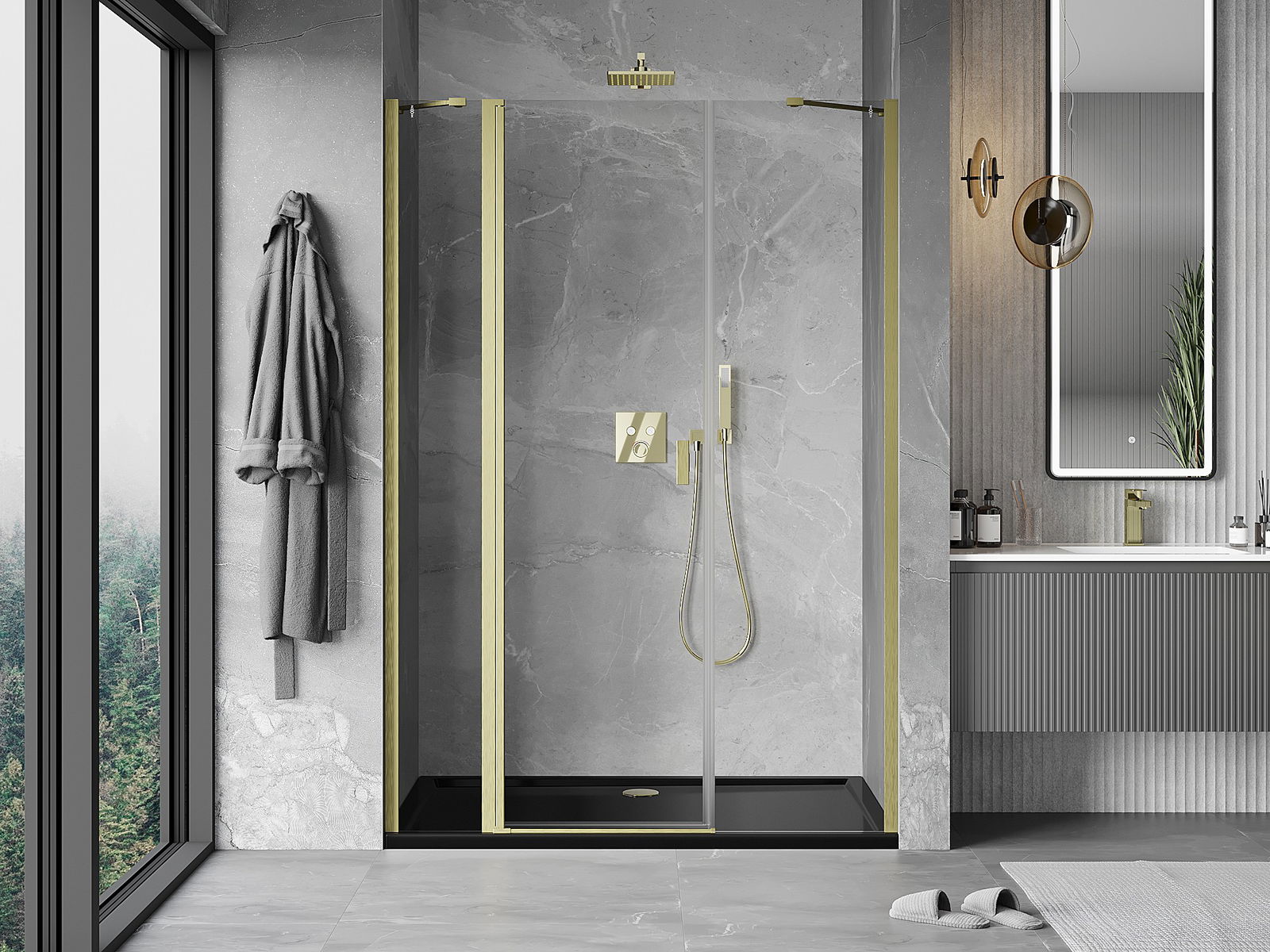 A handy and comfortable handle made from durable and resistant metal. Its trendy shape combined with a finish matched to the colour of the profiles gives the whole a modern and stylish look, highlighting the aesthetics of every bathroom.