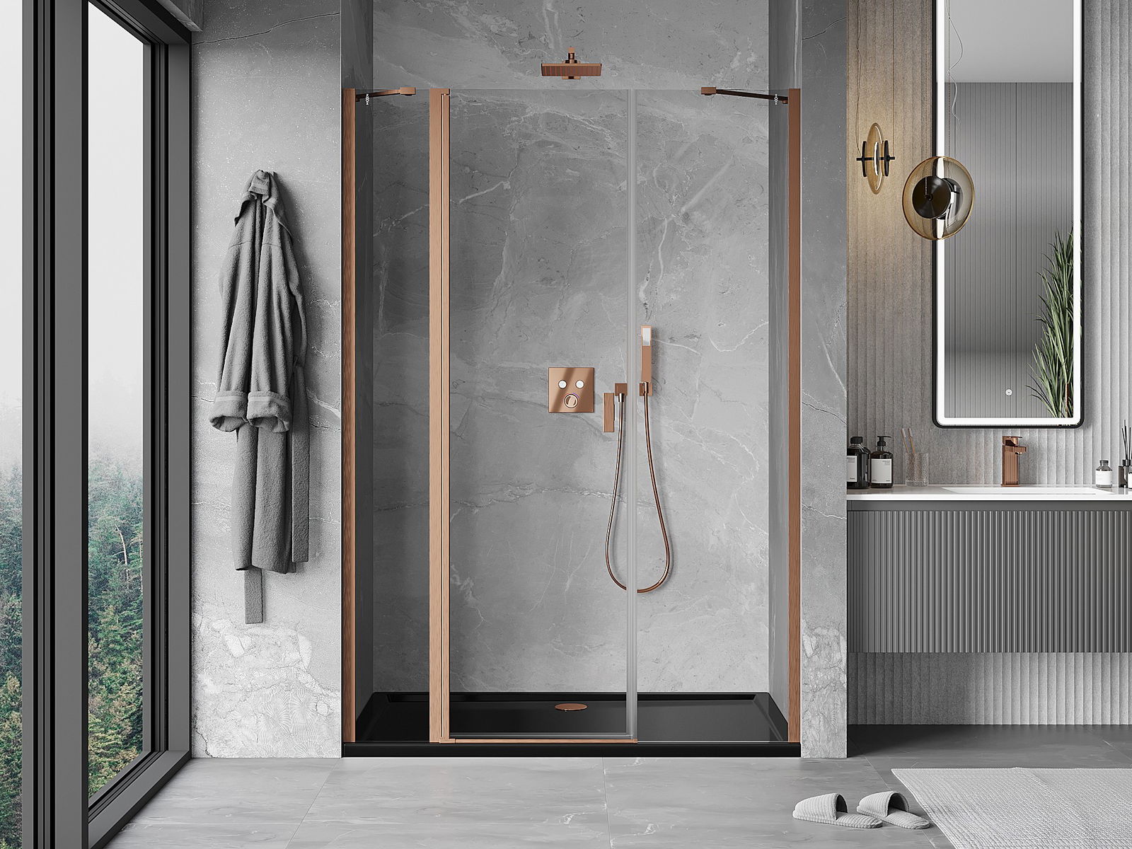 Mexen Mist shower door hinged 145 cm, transparent, brushed copper - 8A4-145-001-65-00