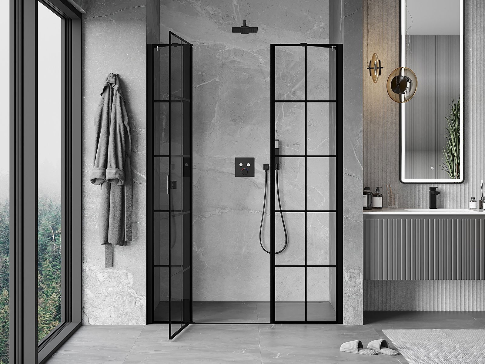 A handy and comfortable handle made from durable and resistant metal. Its trendy shape combined with a finish matched to the colour of the profiles gives the whole a modern and stylish look, highlighting the aesthetics of every bathroom.