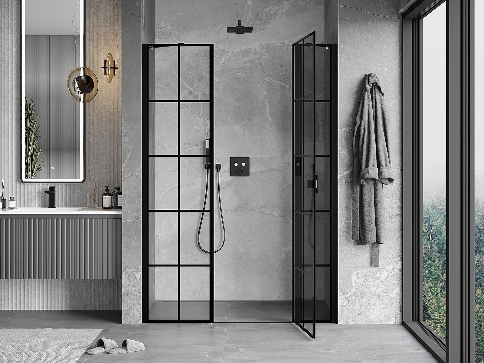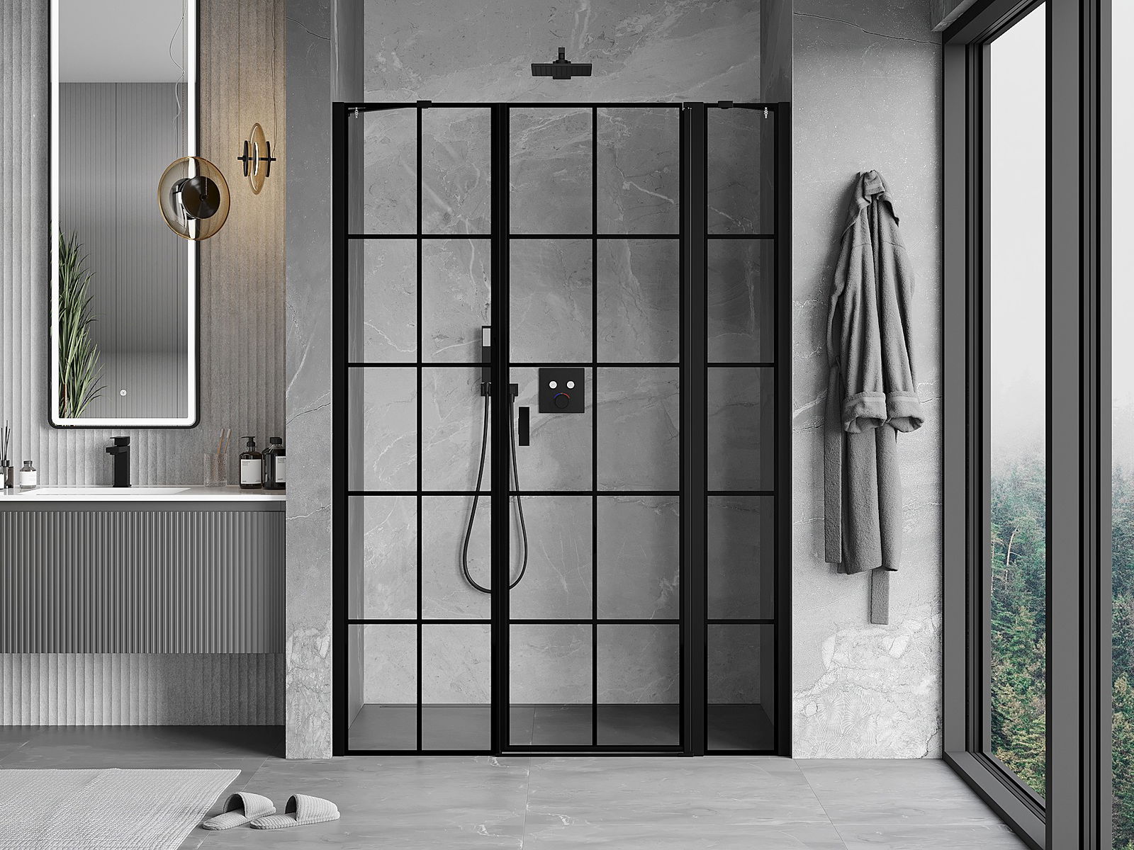 Mexen Mist right hinged shower door 155 cm, black grid, black - 8A4-155-001-70-77-P