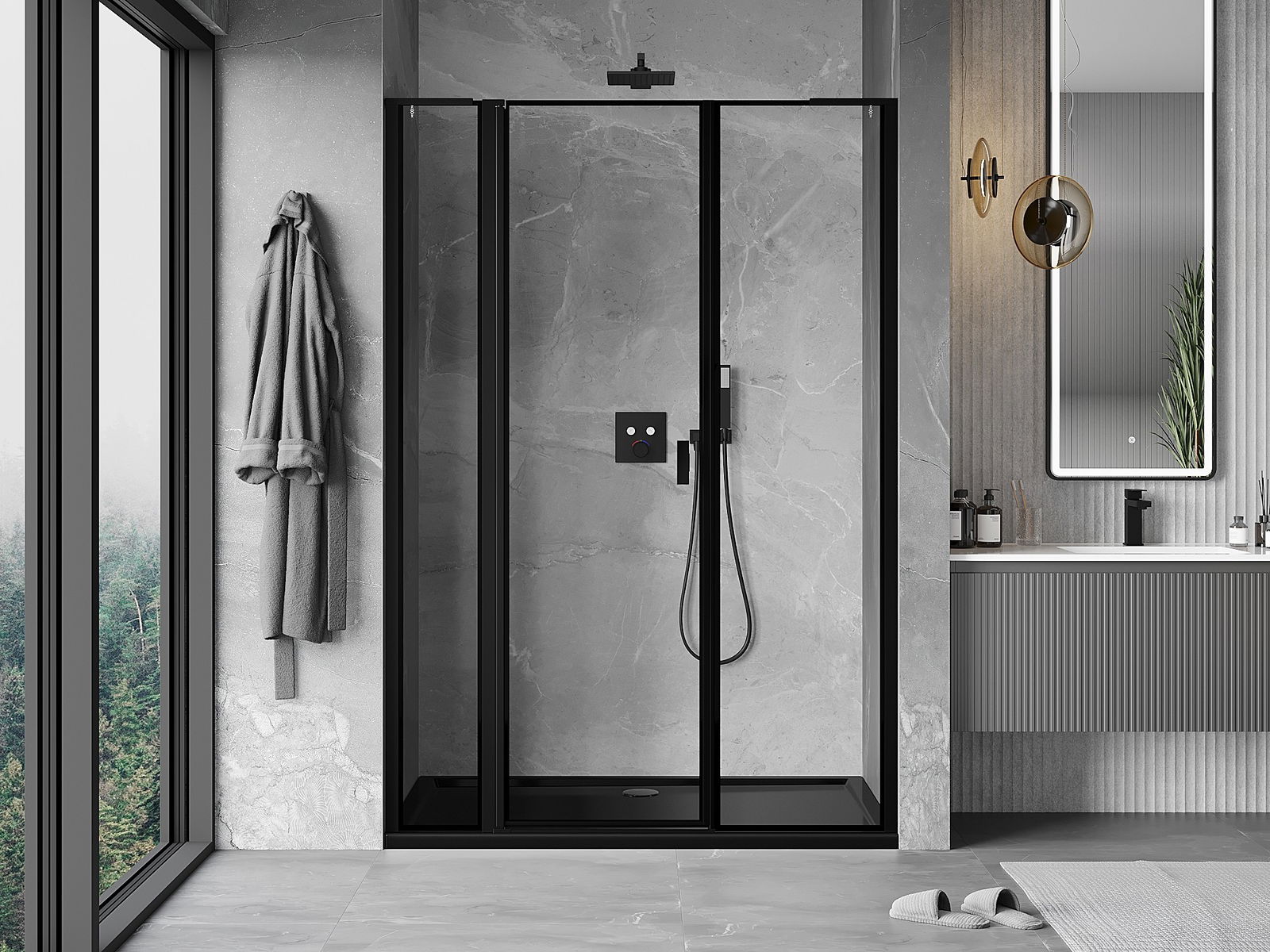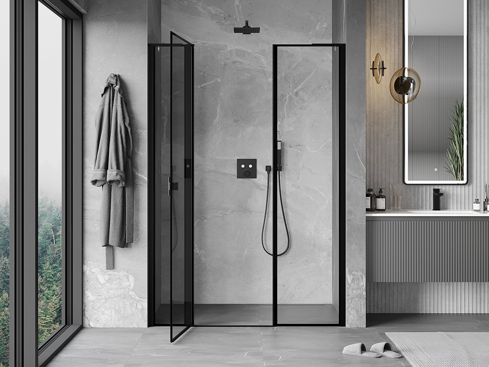 Mexen Mist L Left Hinged Shower Door 155 cm, Black Frame, Black - 8A4L-155-001-70-70-L