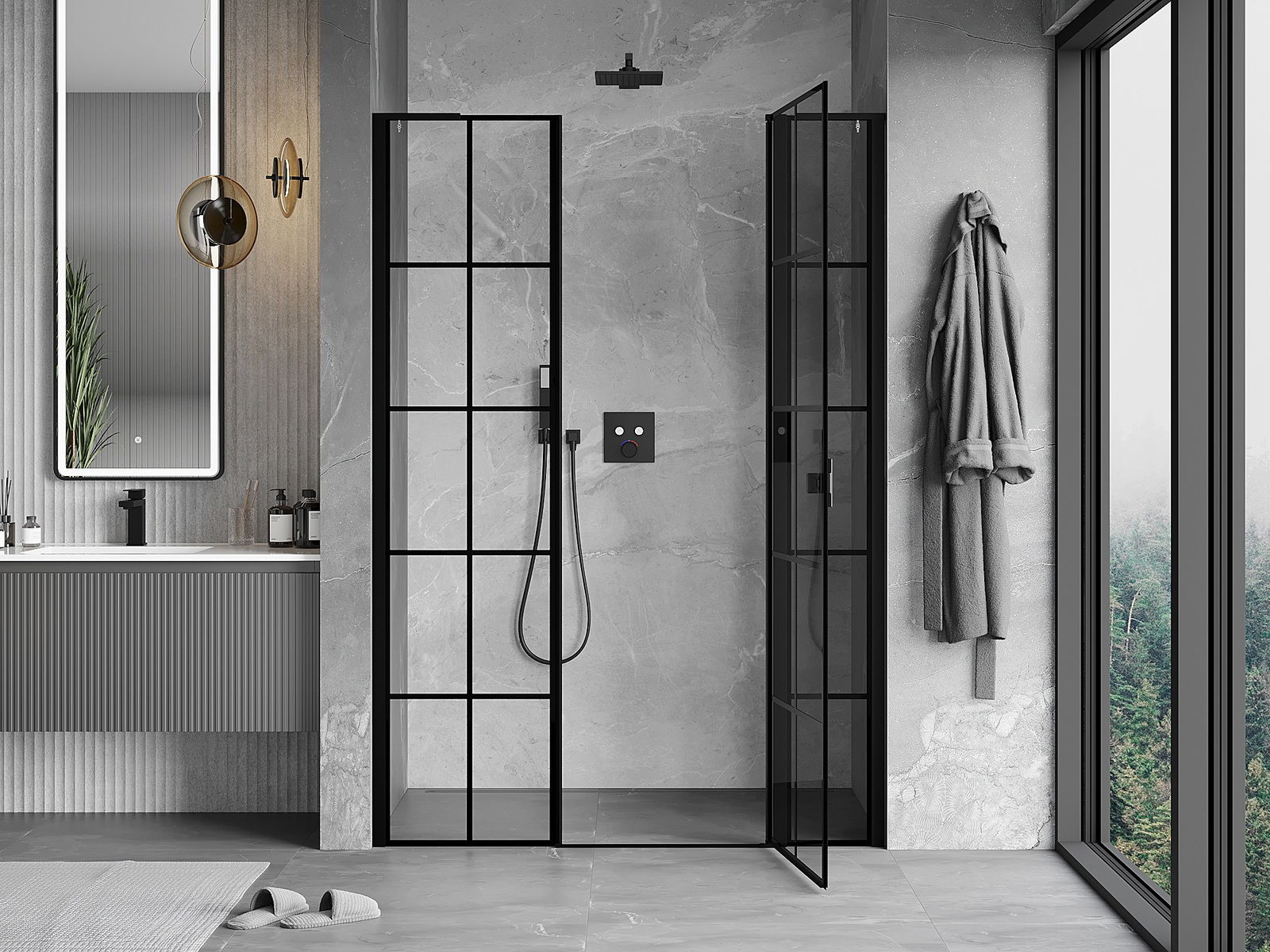A handy and comfortable handle made from durable and resistant metal. Its trendy shape combined with a finish matched to the colour of the profiles gives the whole a modern and stylish look, highlighting the aesthetics of every bathroom.