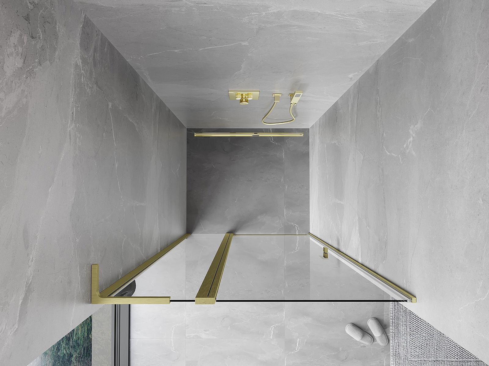 Mexen Mist L 115 cm Hinged Shower Door, Transparent, Brushed Gold - 8A4L-115-000-55-00