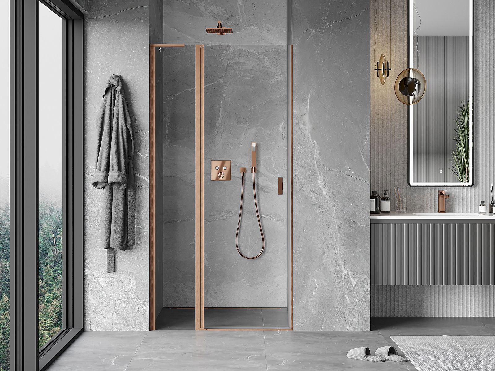 A handy and comfortable handle made from durable and resistant metal. Its trendy shape combined with a finish matched to the colour of the profiles gives the whole a modern and stylish look, highlighting the aesthetics of every bathroom.