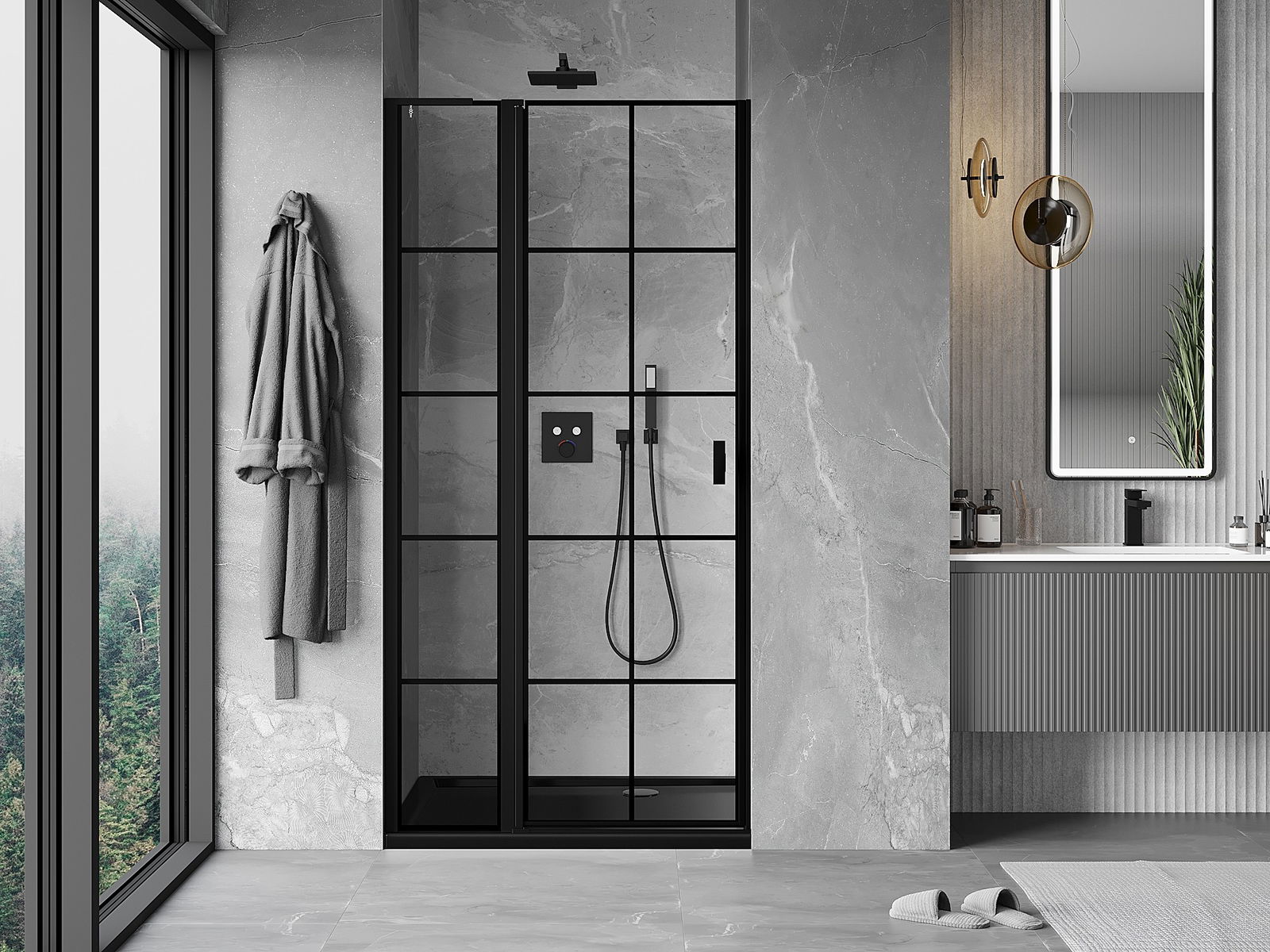 Mexen Mist L Left Hinged Shower Door 120 cm, Black Grid, Black - 8A4L-120-000-70-77-L