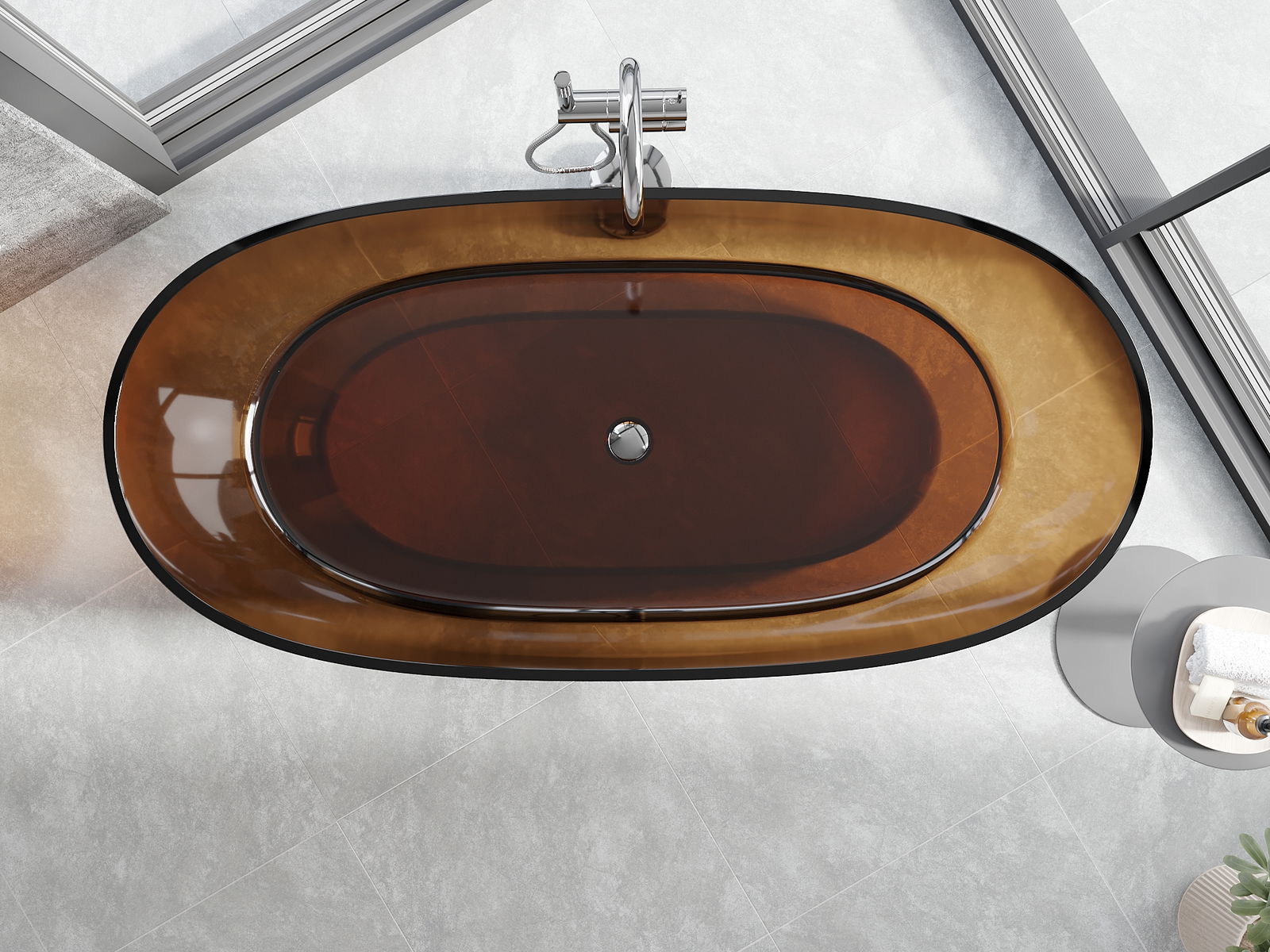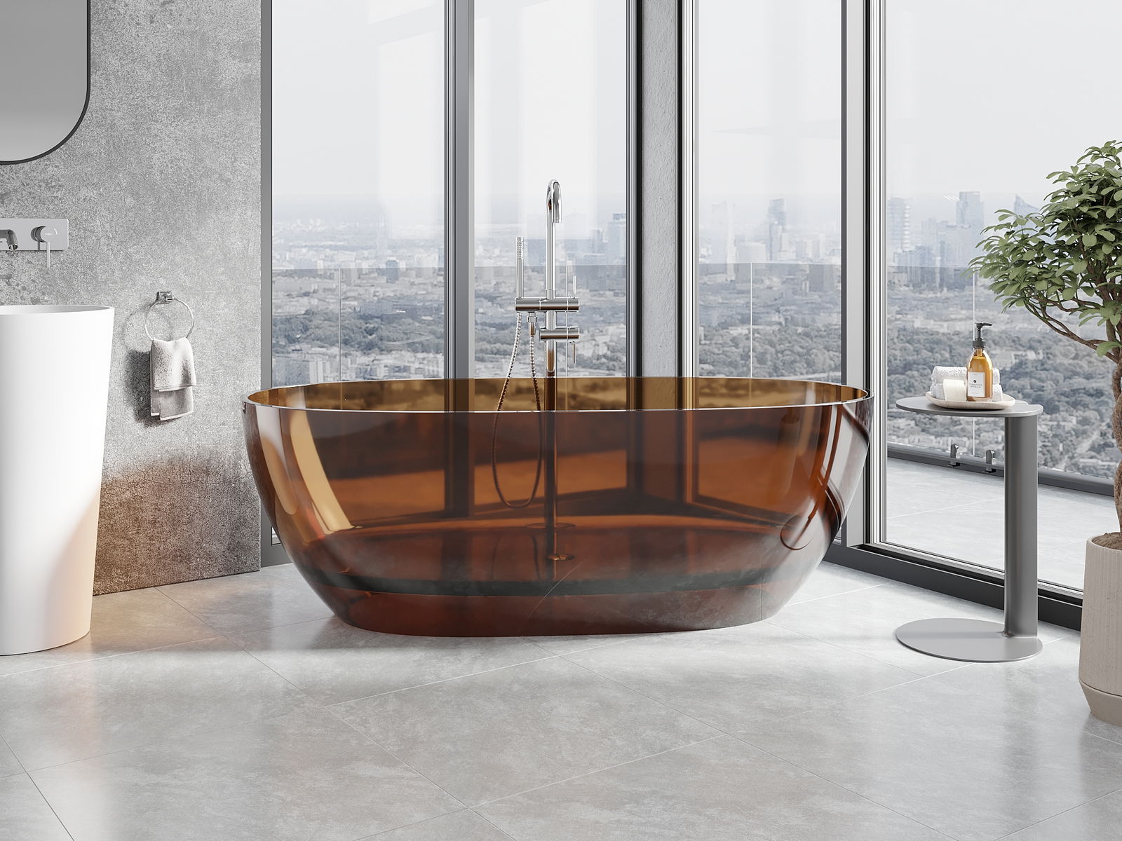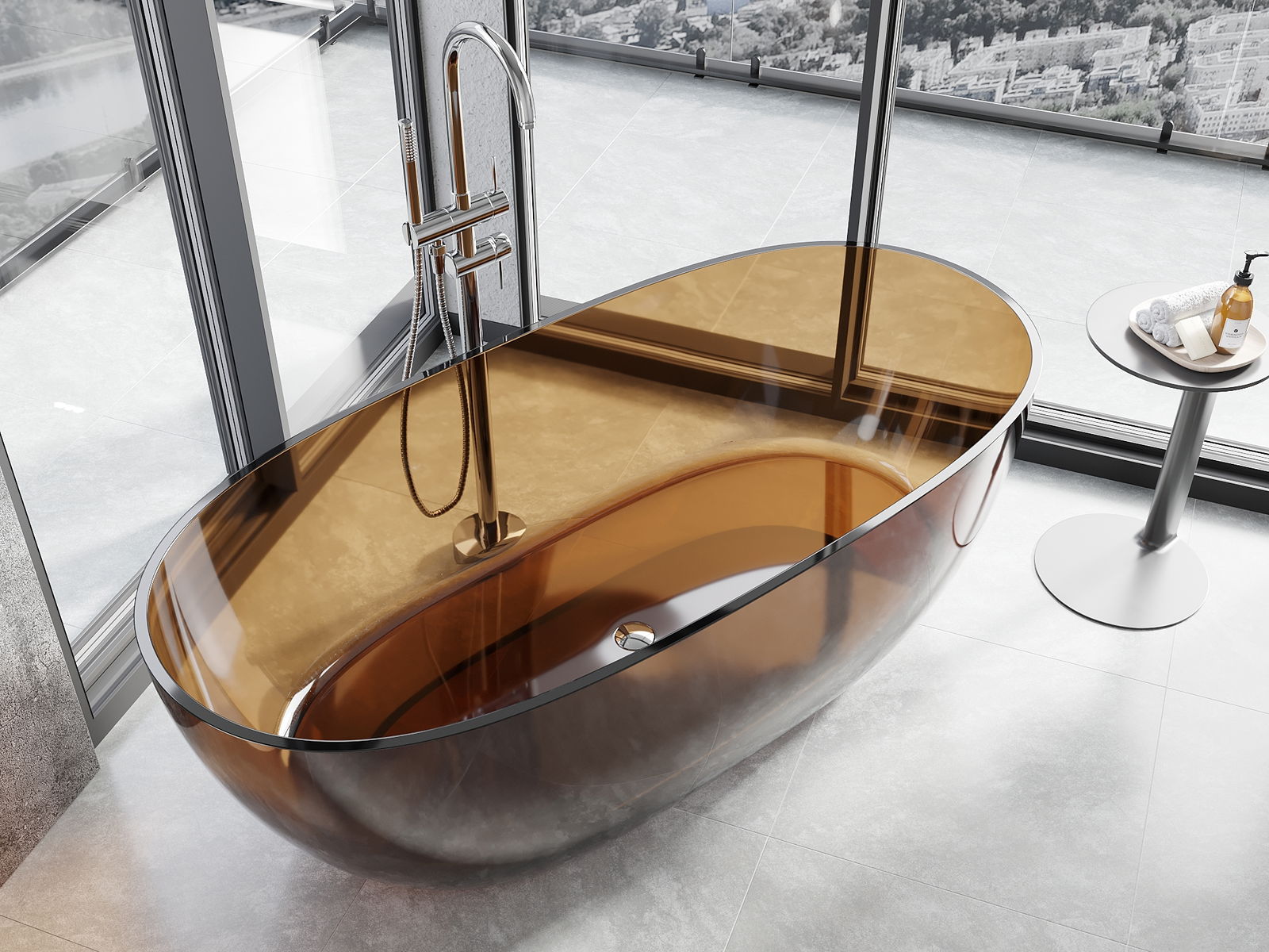 This is a modern material combining an elegant appearance with high durability. It is resistant to mechanical damage, easy to clean, and pleasant to the touch. The transparent form and thin rim of the bathtub add lightness and unique character, creating an impactful accent in bathroom design.
