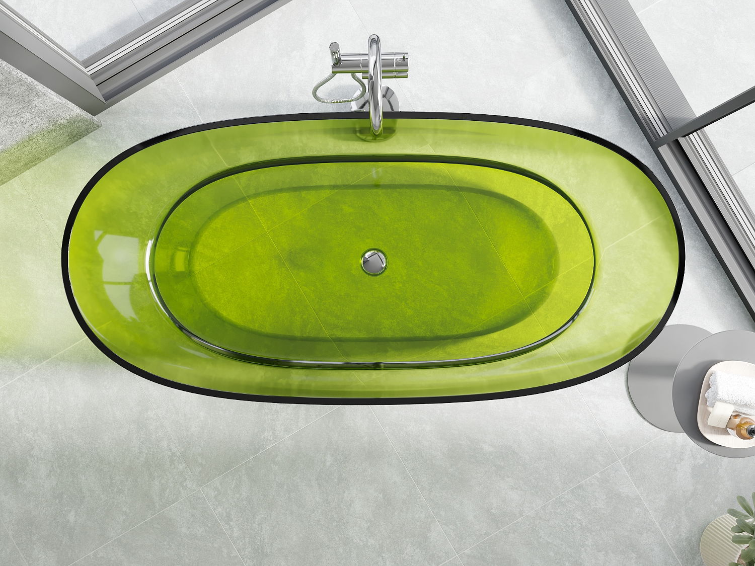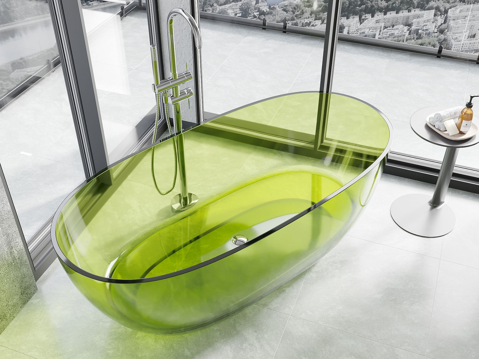 This is a modern material combining an elegant appearance with high durability. It is resistant to mechanical damage, easy to clean, and pleasant to the touch. The transparent form and thin rim of the bathtub add lightness and unique character, creating an impactful accent in bathroom design.