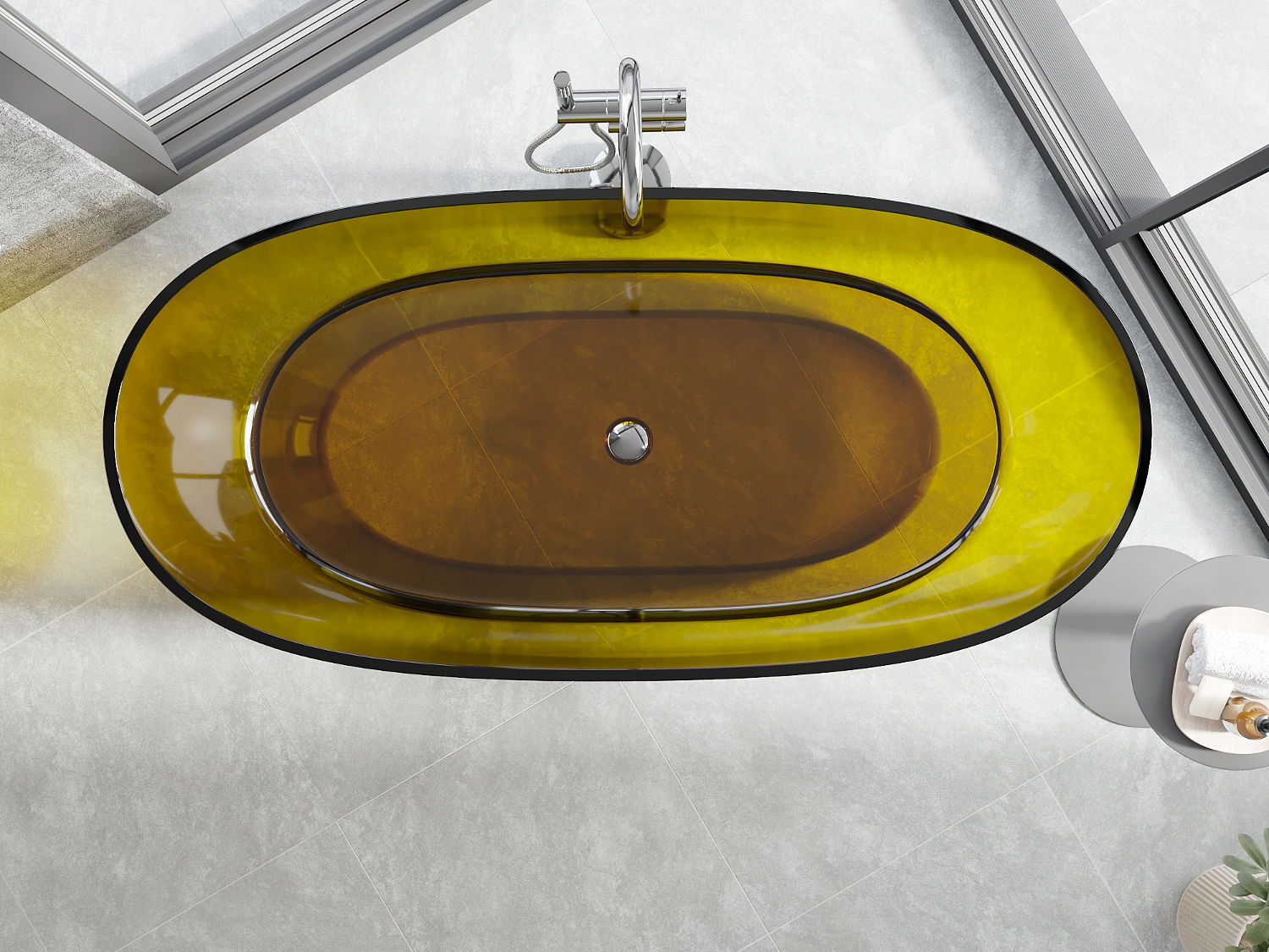 This is a modern material combining an elegant appearance with high durability. It is resistant to mechanical damage, easy to clean, and pleasant to the touch. The transparent form and thin rim of the bathtub add lightness and unique character, creating an impactful accent in bathroom design.