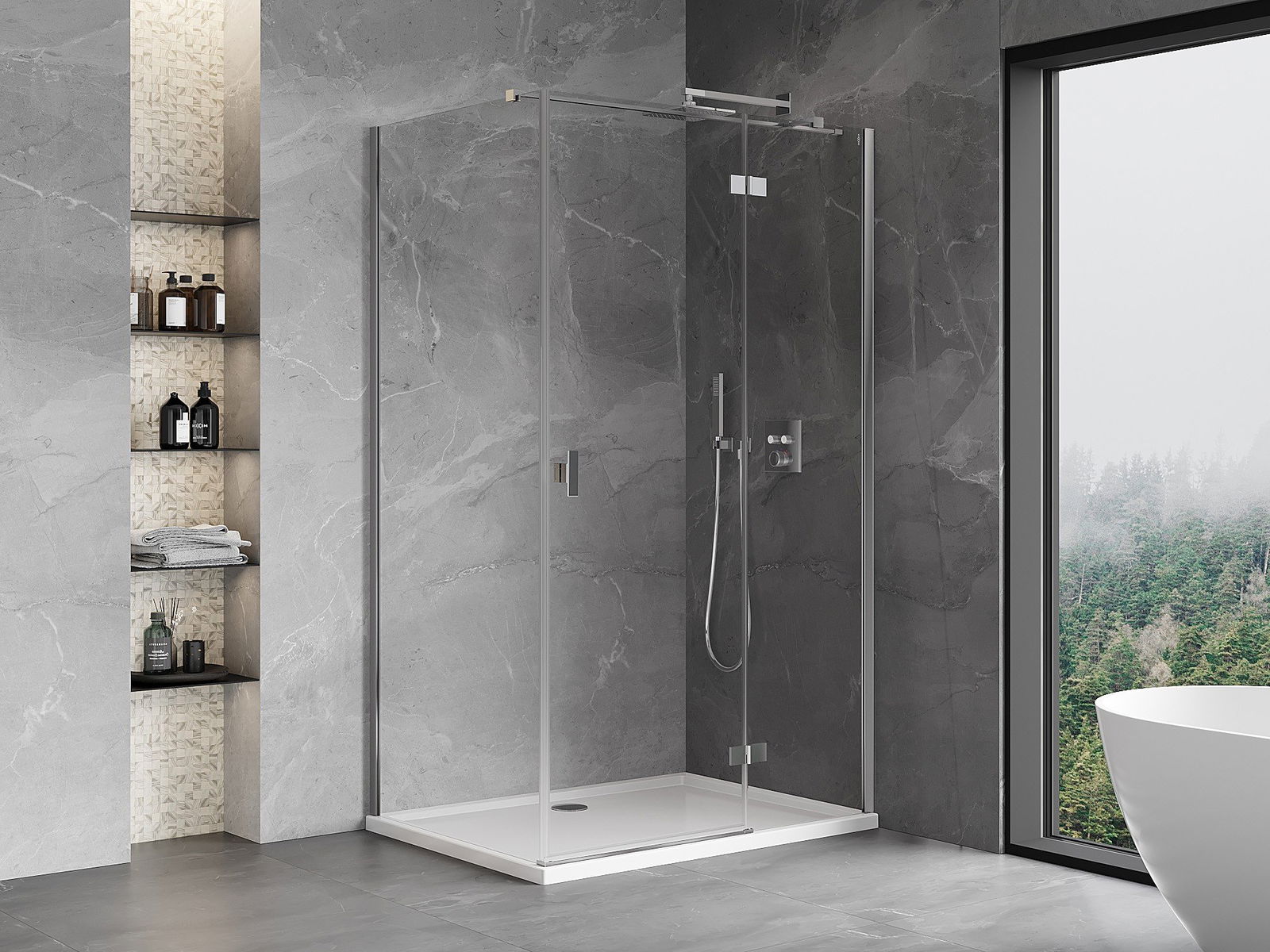A handy and comfortable handle made from durable and resistant metal. Its trendy shape combined with a finish matched to the colour of the profiles gives the whole a modern and stylish look, highlighting the aesthetics of every bathroom.