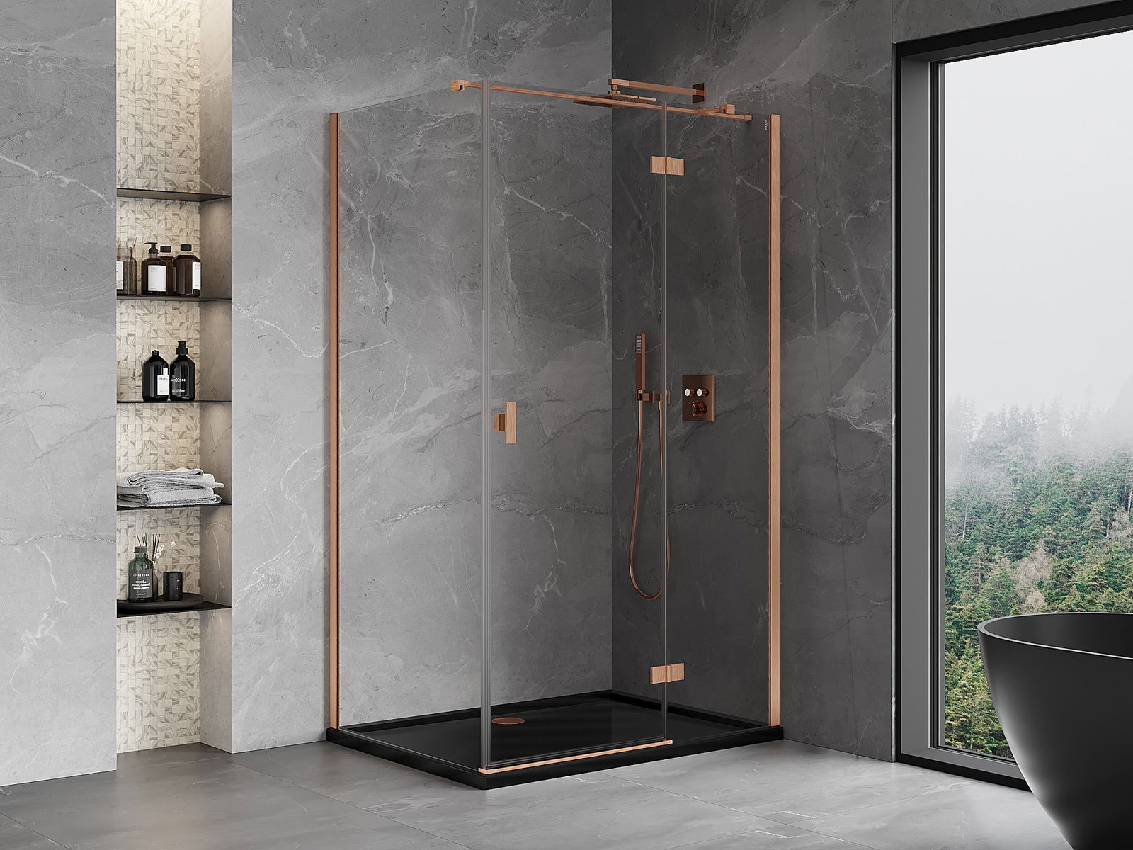 Mexen Mist-H T right-folding shower cabin 80 x 90 cm, transparent, brushed copper - 8A5T-080-090-65-00-P