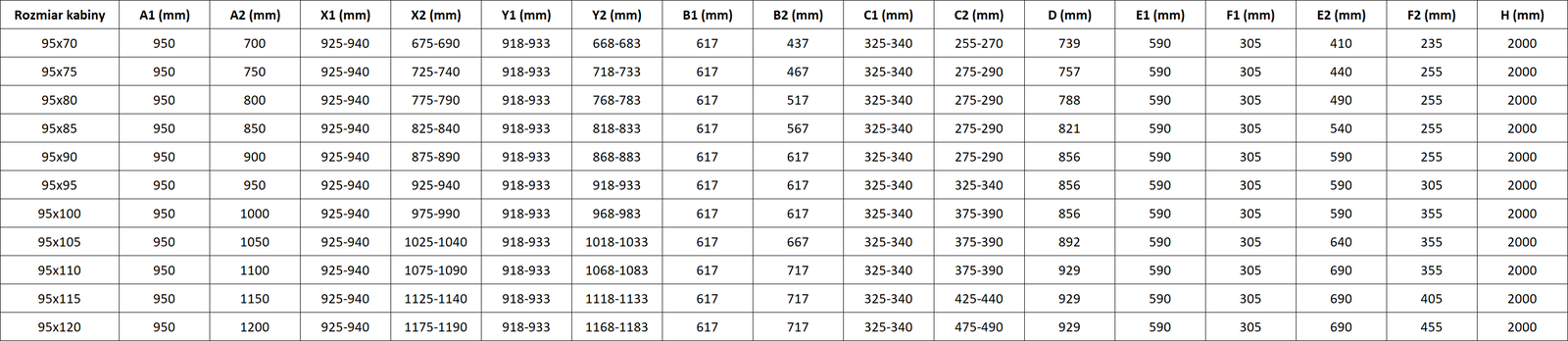 Size: 95x100 cm (left door 95 cm, right door 100 cm)