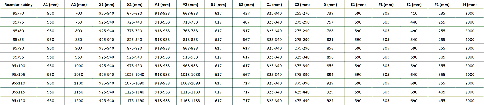 Size: 95x95 cm (left door 95 cm, right door 95 cm)