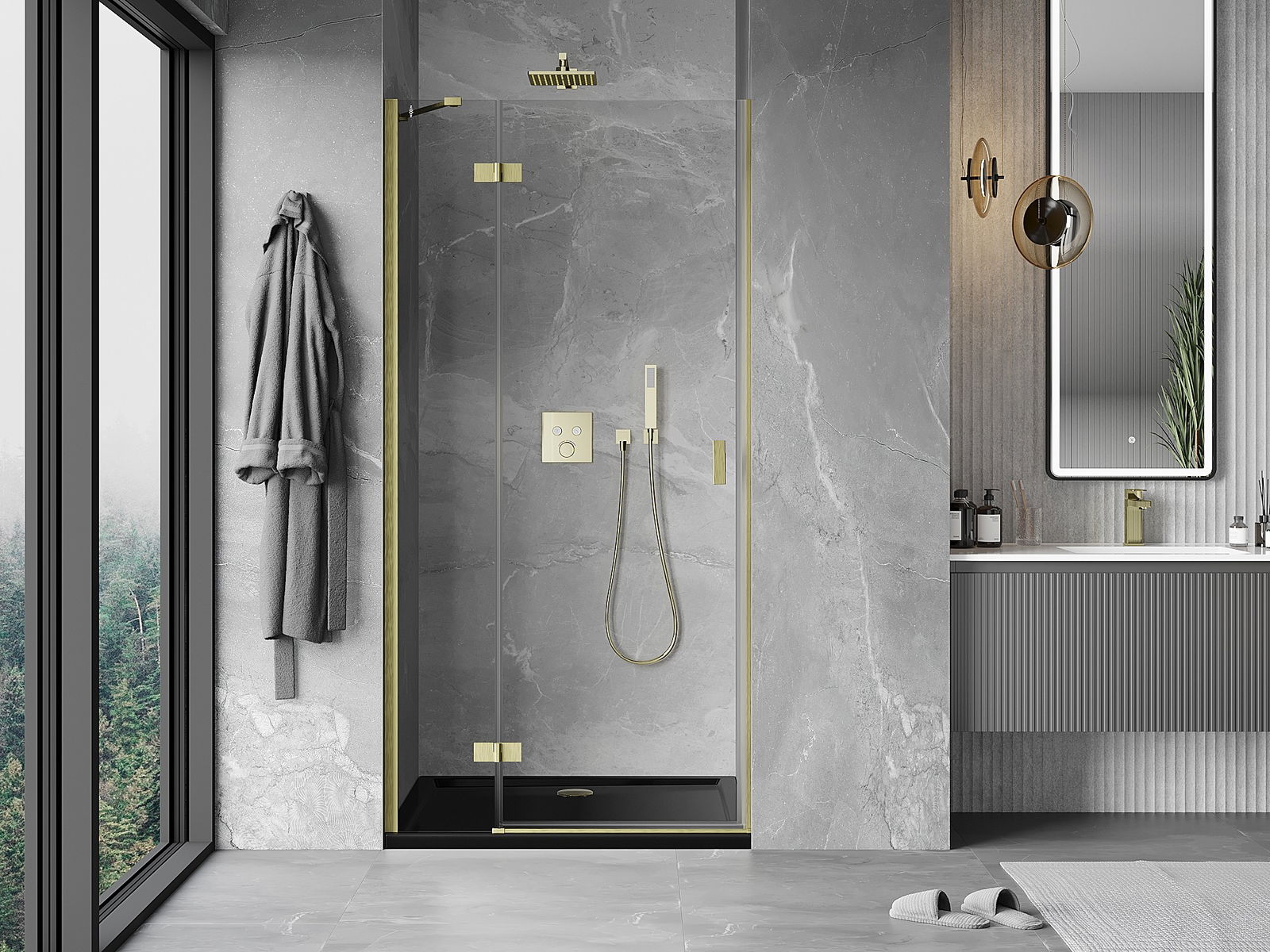 Mexen Mist-H left hinged shower door 110 cm, transparent, brushed gold - 8A5-110-000-55-00-L