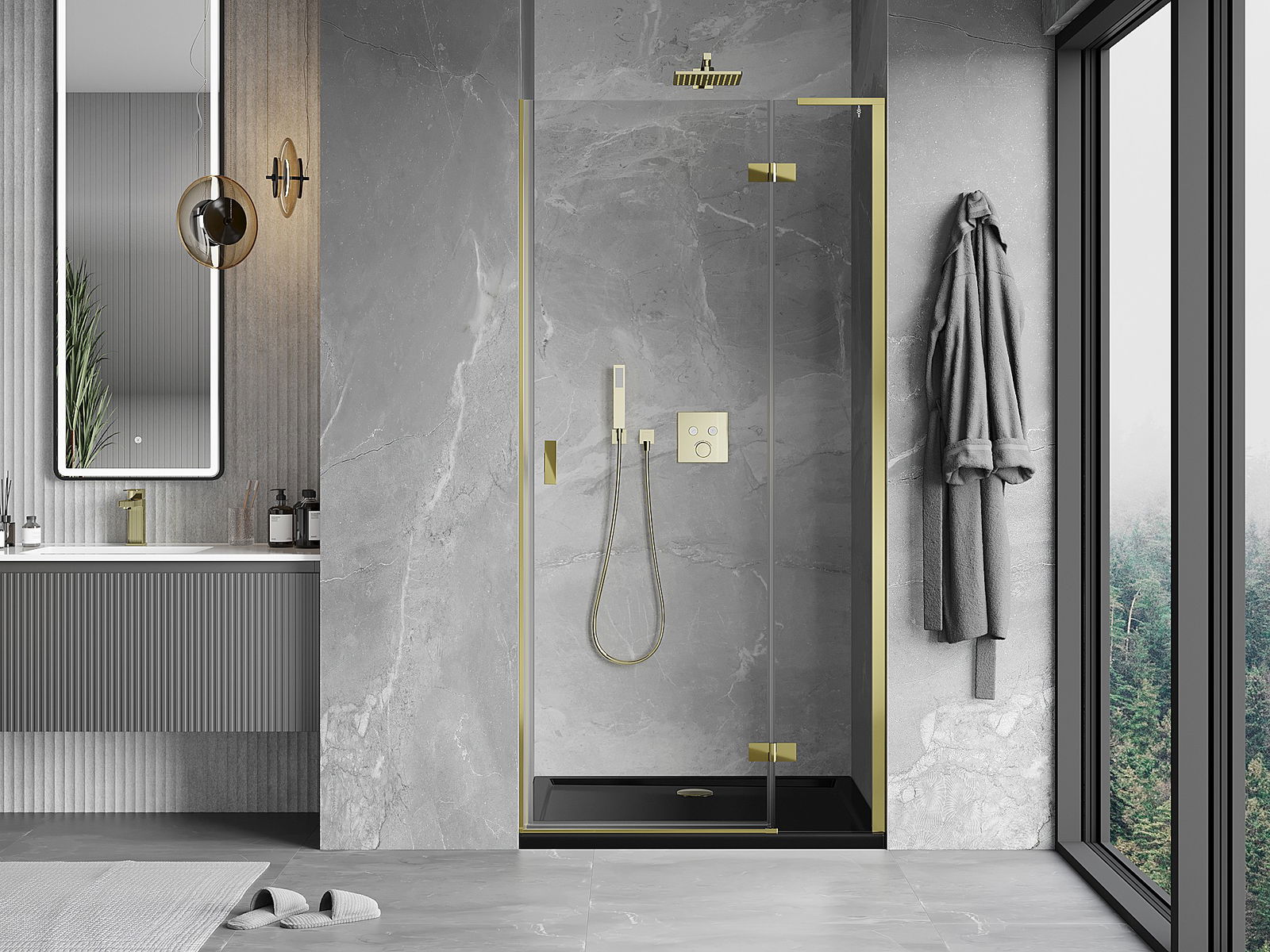 A handy and comfortable handle made from durable and resistant metal. Its trendy shape combined with a finish matched to the colour of the profiles gives the whole a modern and stylish look, highlighting the aesthetics of every bathroom.