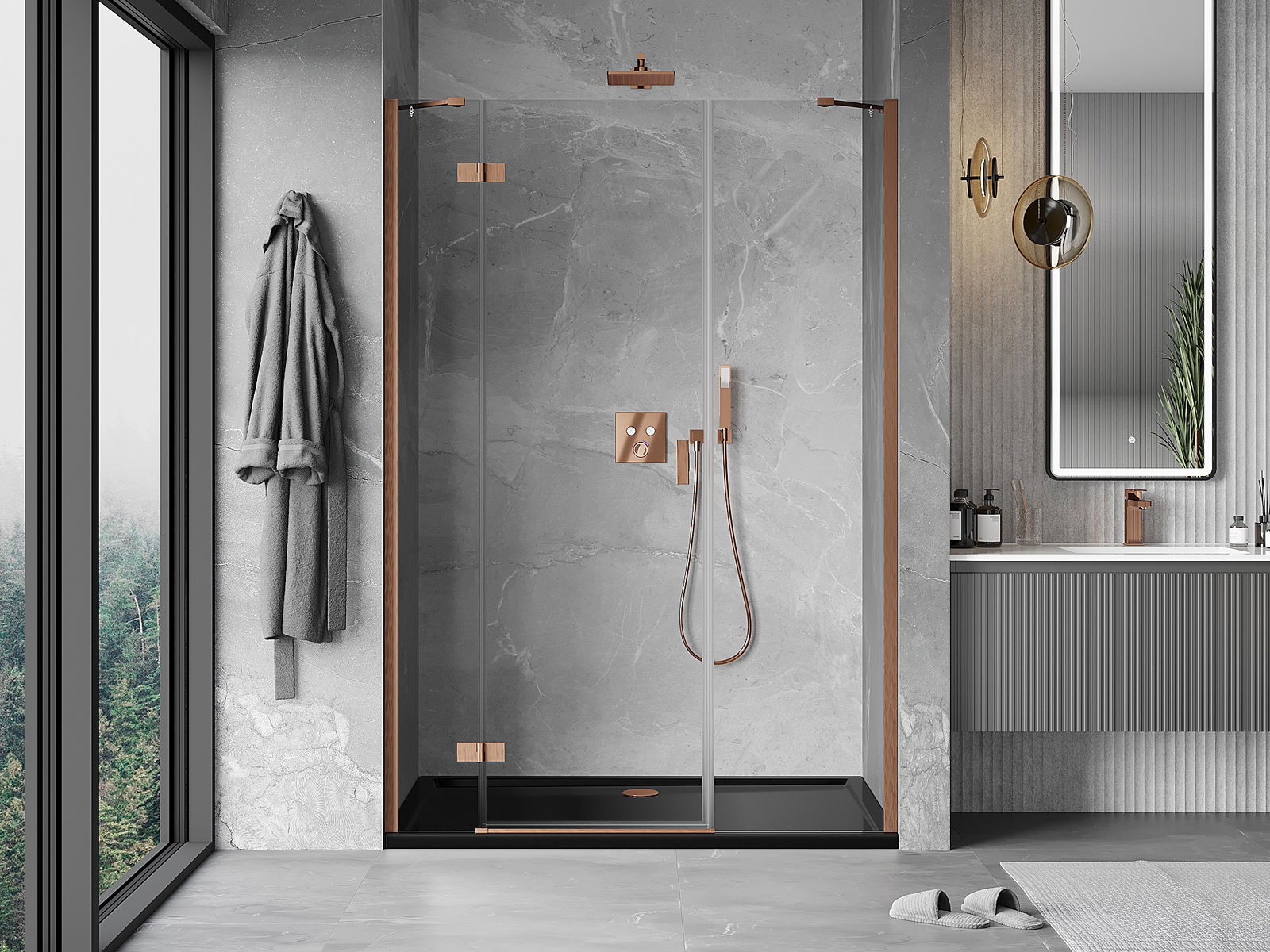 A handy and comfortable handle made from durable and resistant metal. Its trendy shape combined with a finish matched to the colour of the profiles gives the whole a modern and stylish look, highlighting the aesthetics of every bathroom.