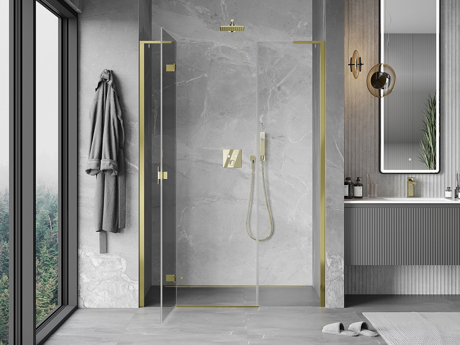 A handy and comfortable handle made from durable and resistant metal. Its trendy shape combined with a finish matched to the colour of the profiles gives the whole a modern and stylish look, highlighting the aesthetics of every bathroom.