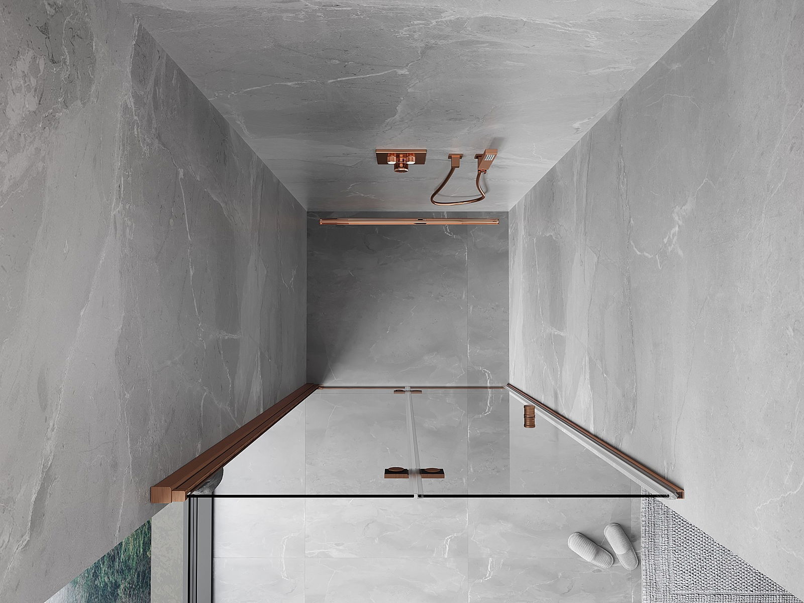 Mexen Mist-F foldable shower door left 70 cm, transparent, brushed copper - 8A6-070-000-65-00-L