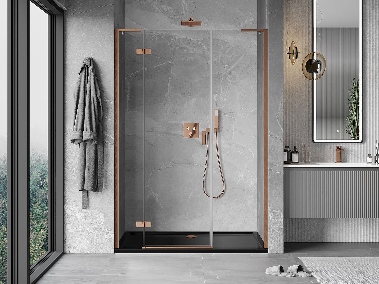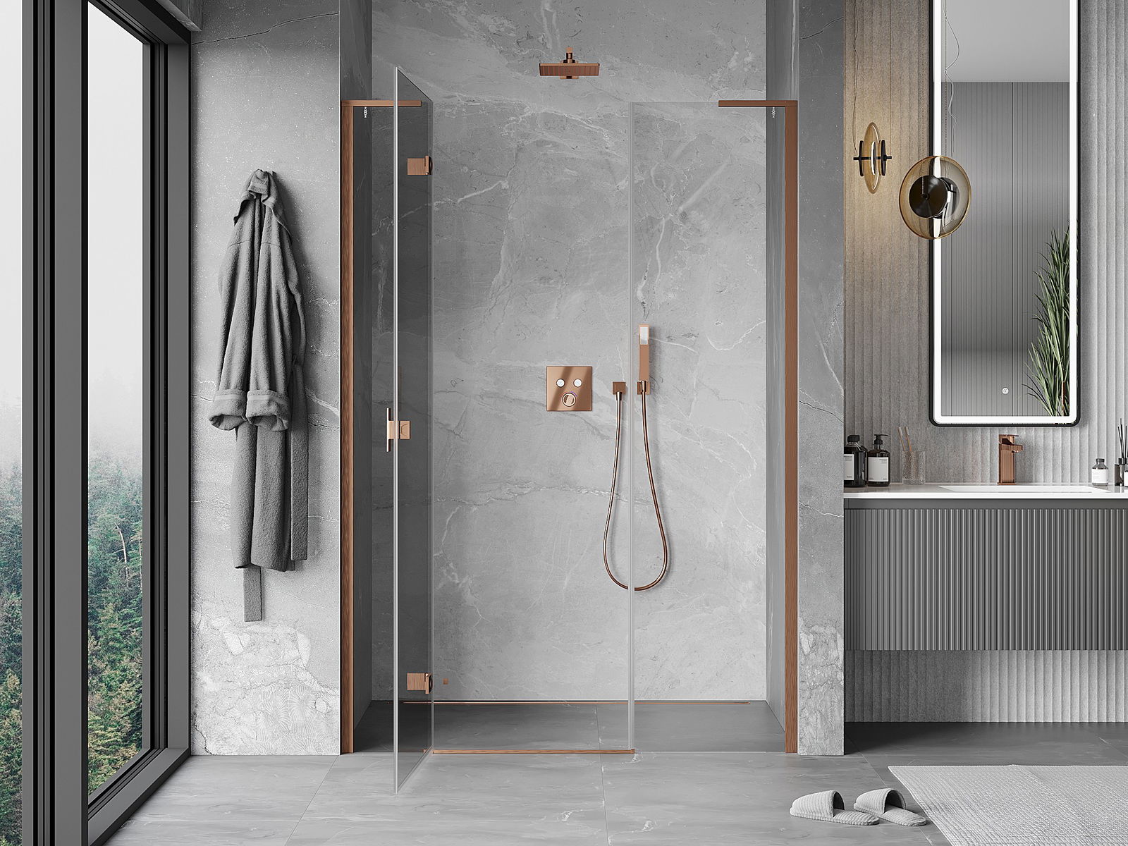 A handy and comfortable handle made from durable and resistant metal. Its trendy shape combined with a finish matched to the colour of the profiles gives the whole a modern and stylish look, highlighting the aesthetics of every bathroom.